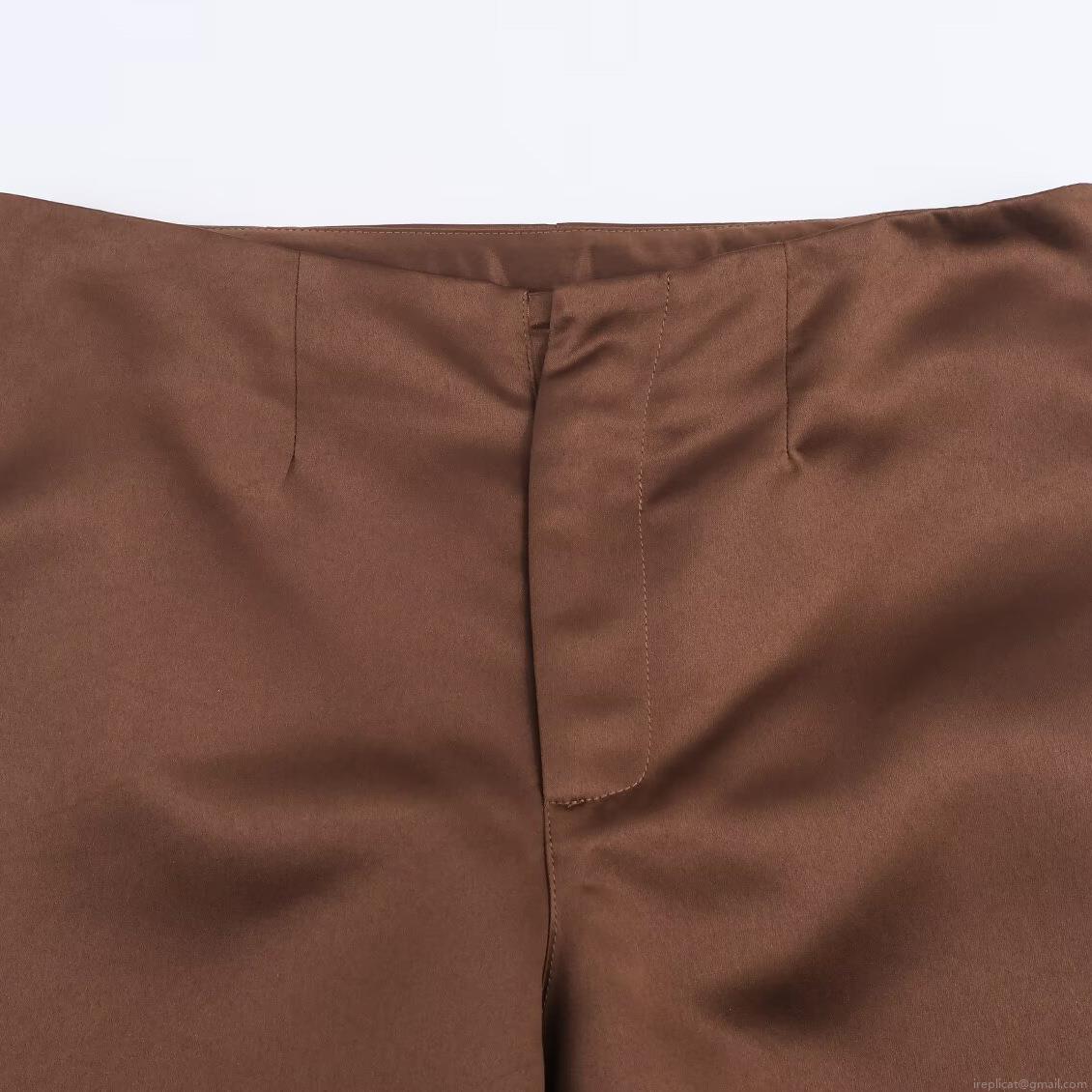 Women's 3-Piece Satin Suit Set Brown Open Back Blazer Cutout Jacket Strapless Bandeau Top High Waist Wide Leg Trousers Elegant Office Commuter Outfit