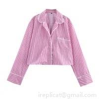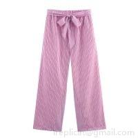 Women's 3-Piece Striped Clothing Set Cotton Blend Button Down Long Sleeve Shirt Camisole And Wide Leg Pants Casual Streetwear Pink Lounge Set For Women