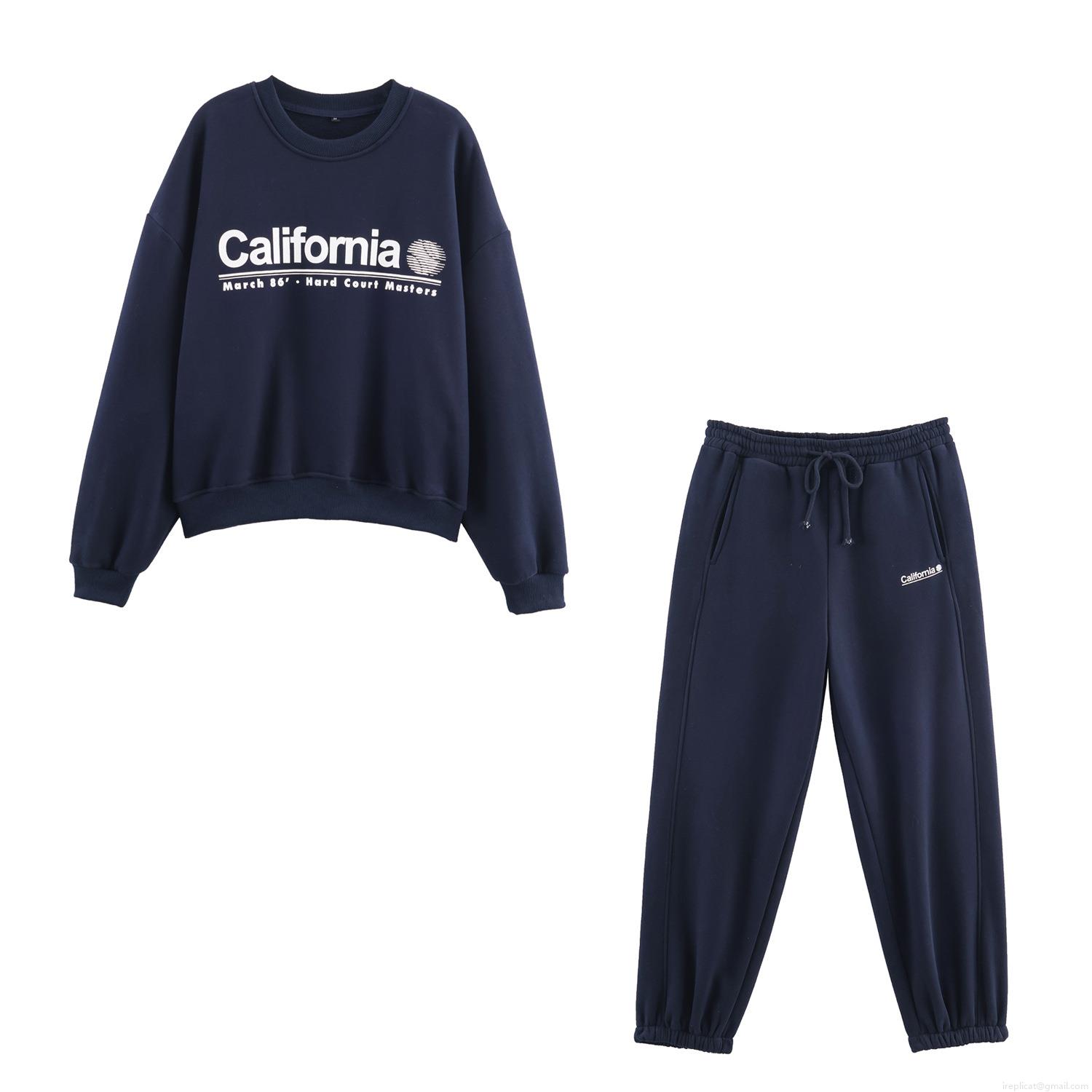 • Women's 85% Cotton 15% Polyester Fleece Sweatshirt And Sweatpants Set California Letter Print Long Sleeve Round Neck Jogger Pants Two Piece Sportsuit Streetwear Navy Blue