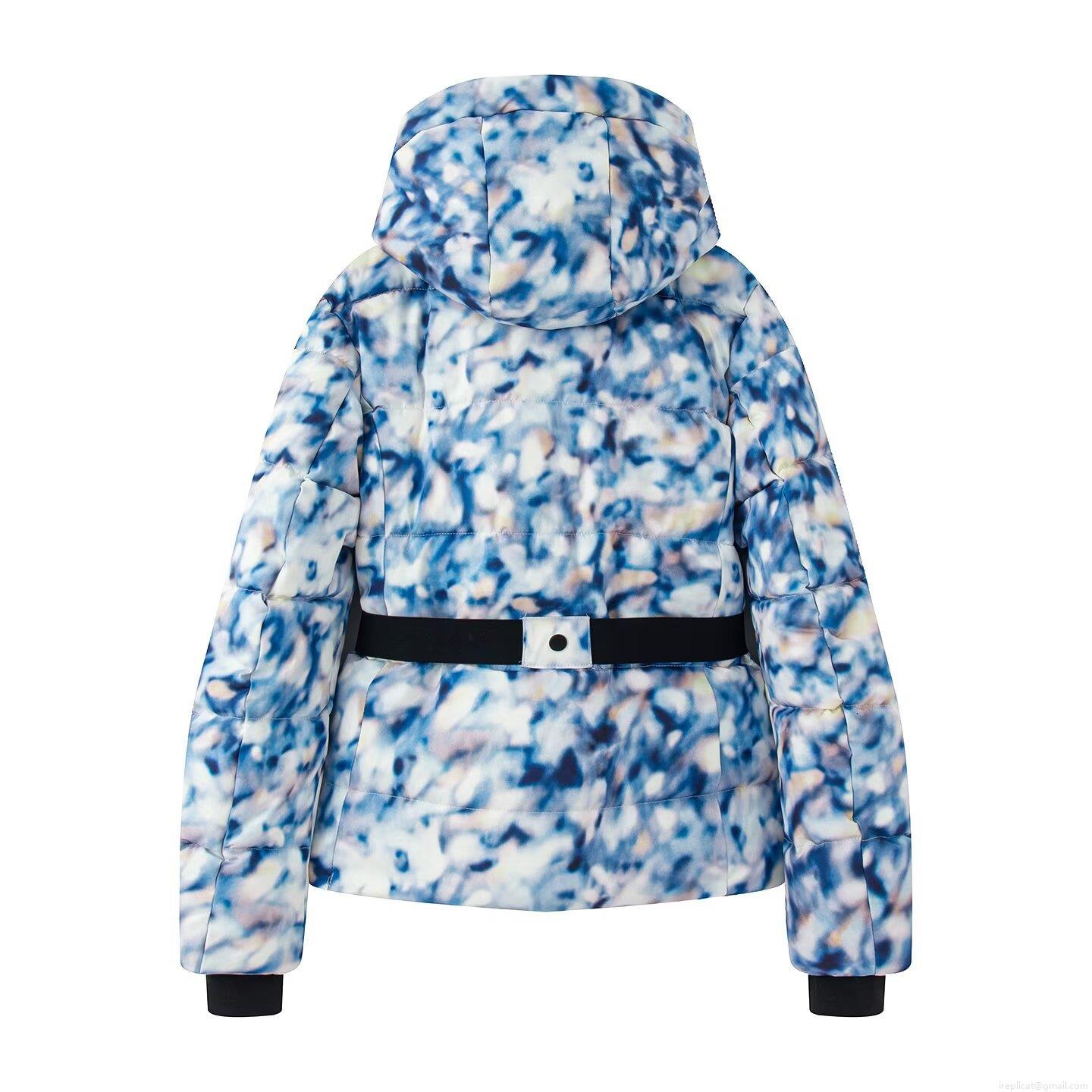 • Women's Abstract Print Hooded Ski Suit Set Waterproof Padded Polyester Winter Jacket And Pants Outdoor Sports Snowboard Wear