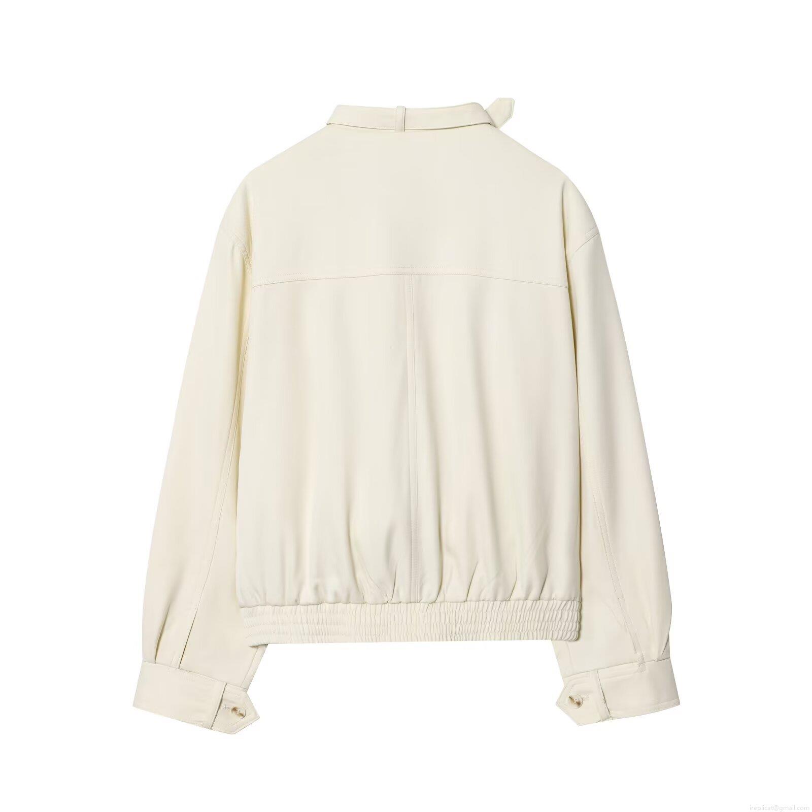 • Women's Autumn Western Style Button Decor Stand Collar Jacket and High Waist Wide Leg Pants Two Piece Set Cream White Casual Streetwear Polyester Outfit