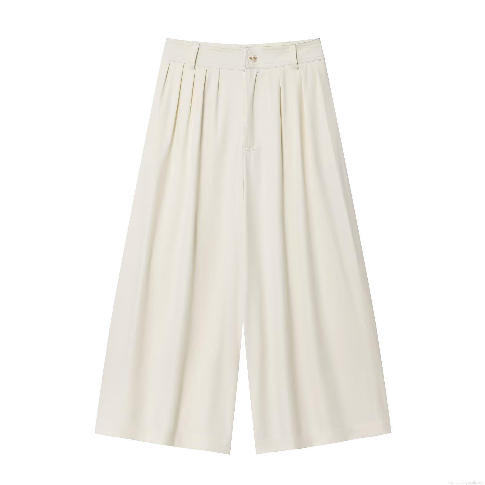 Solid Color, Button Decoration, Stand-up Collar Design, Wide-leg Cut, High-waisted Pleats