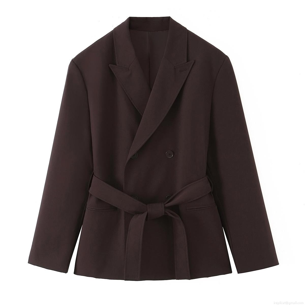 • Women's Blazer and Pants Suit Set With Belt Double Breasted Solid Color Polyester Long Sleeve Two Piece Outfits For Office Daily Streetwear Fall Fashion