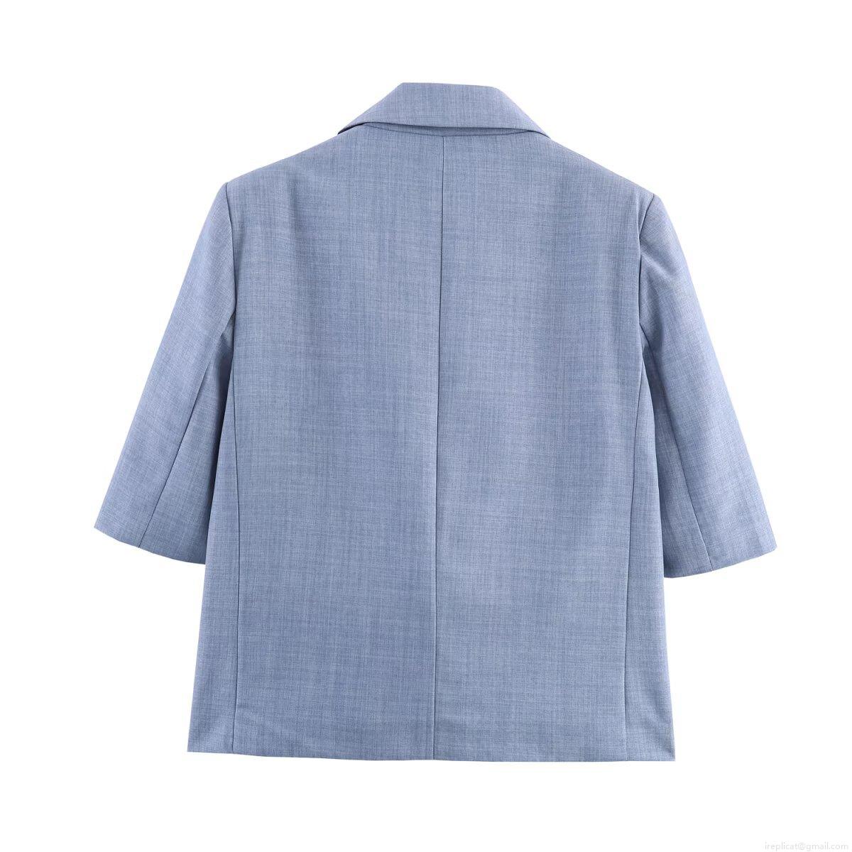 • Women's Blazer Jacket And Pants Set Casual Short Sleeve Notch Lapel Top High Waist Wide Leg Trousers Two Piece Outfits Light Blue Streetwear