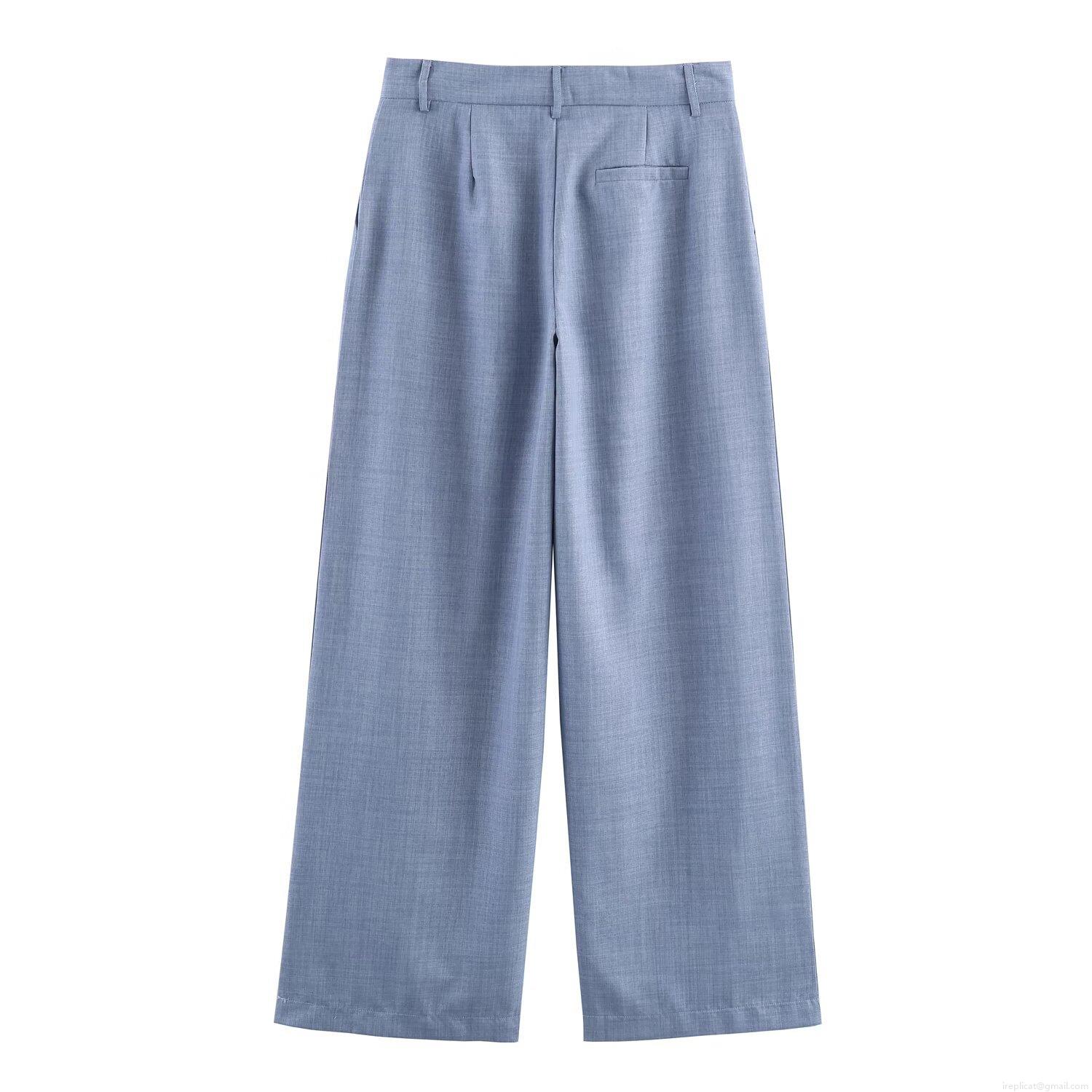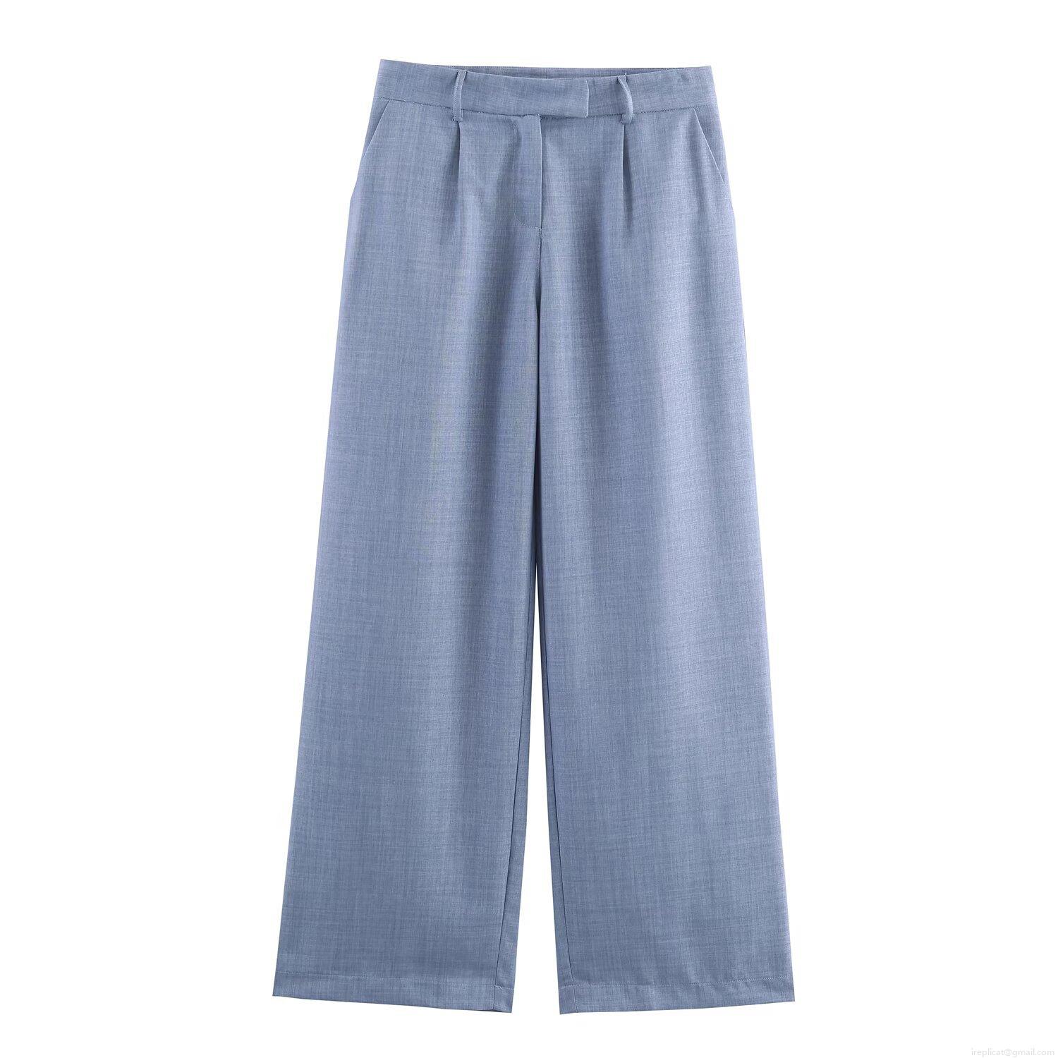 Solid Color, Single-breasted, Pleated Decoration, Pocket Decoration, Gray Texture, Wide-leg Design
