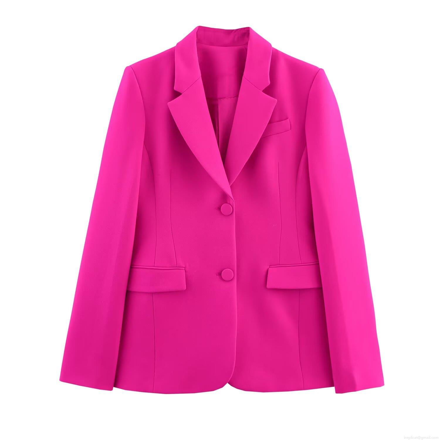 • Women's Blazer Pants Set Elegant Polyester Double Button Slim Fit Jacket High Waist Flared Trousers Office Lady Streetwear Suit Magenta