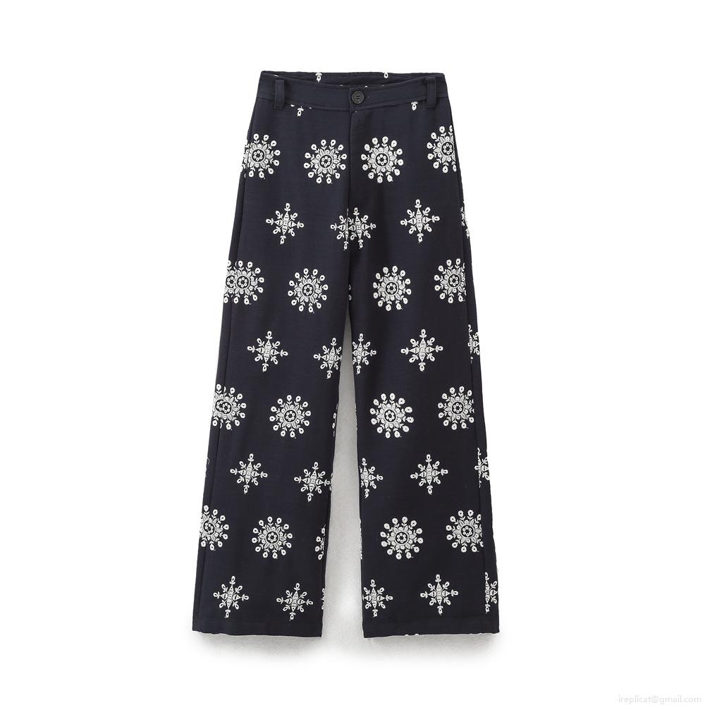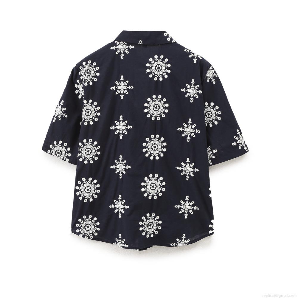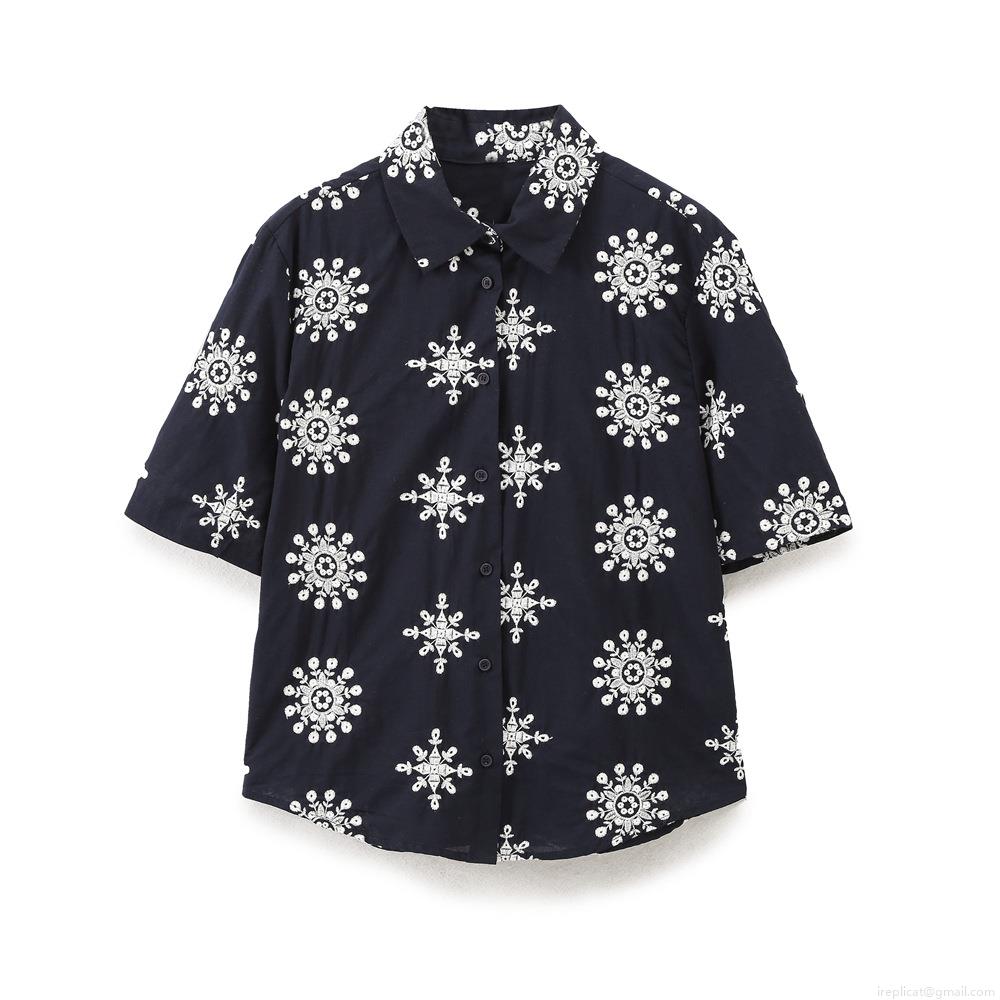 • Women's Bohemian Cotton Blend Two-Piece Set Mandala Embroidery Short Sleeve Button Down Shirt and Wide Leg Pants Ethnic Print Casual Summer Outfit