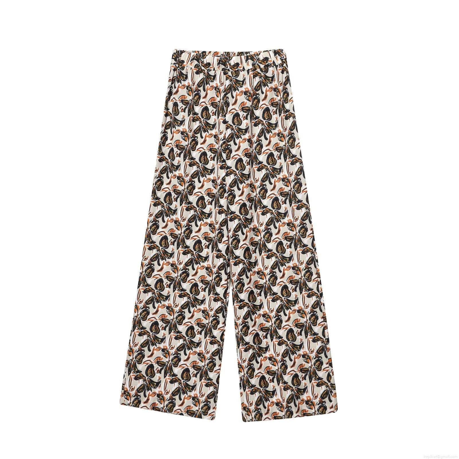 • Women's Bohemian Floral Print 2 Piece Sets Halter V Neck Backless Top And High Waist Wide Leg Pants Polyester Casual Summer Vacation Outfits