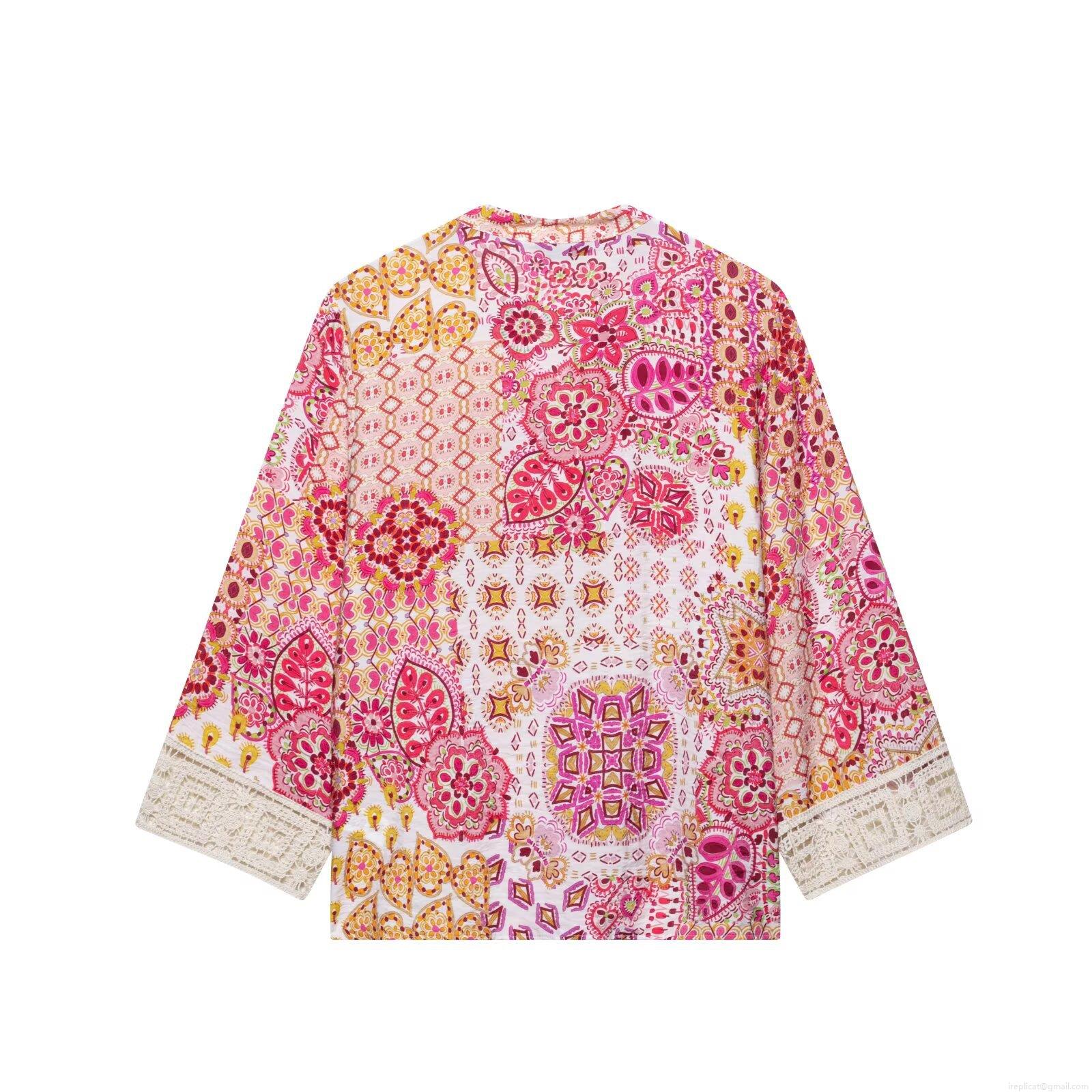 Lace Patchwork, Lantern Sleeves, Mandala Pattern, Bohemian Print, Ethnic Floral Print