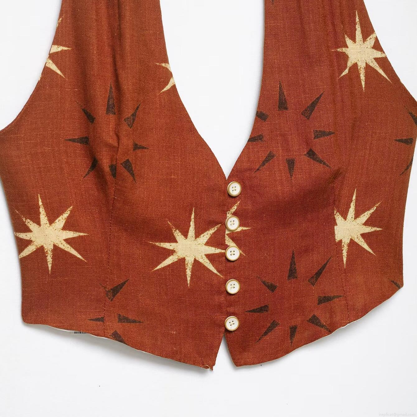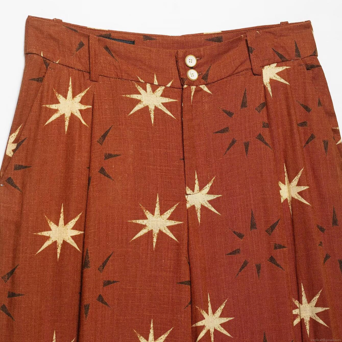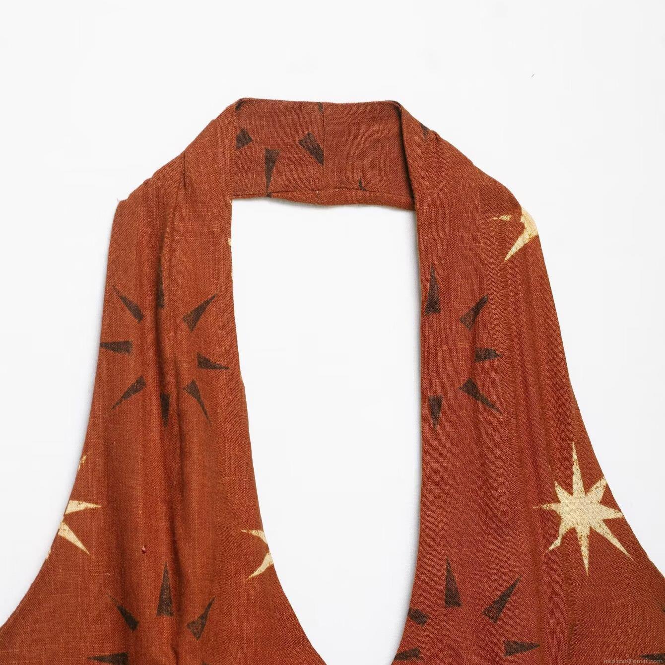 • Women's Bohemian Sun Star Print 2-Piece Set Halter Neck Button Crop Top And High Waist Wide Leg Pants Cotton Linen Blend Ethnic Summer Vacation Casual Outfit