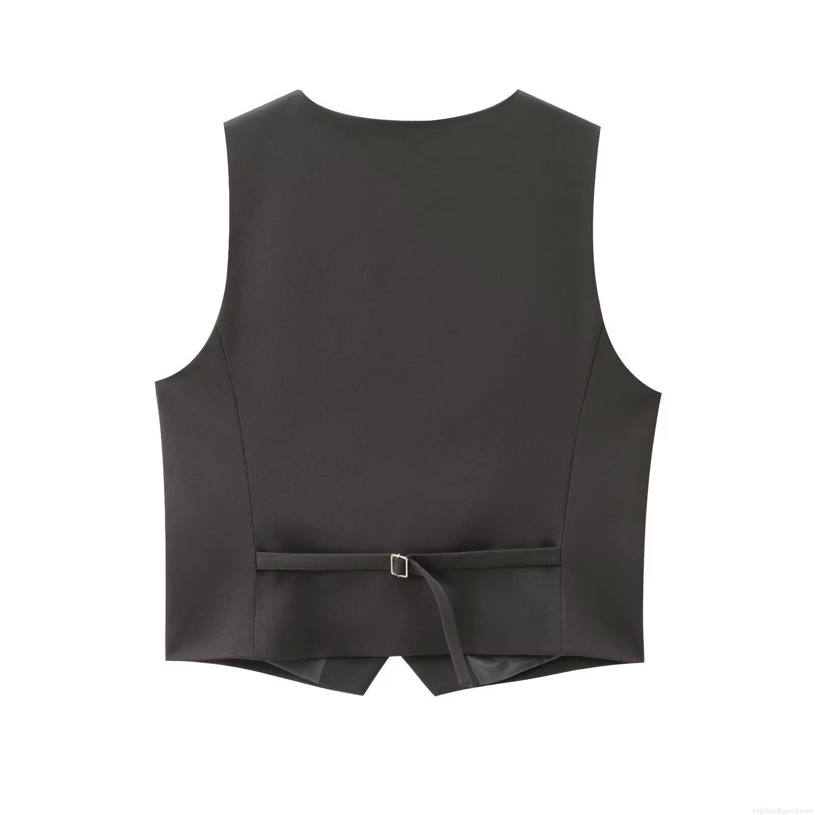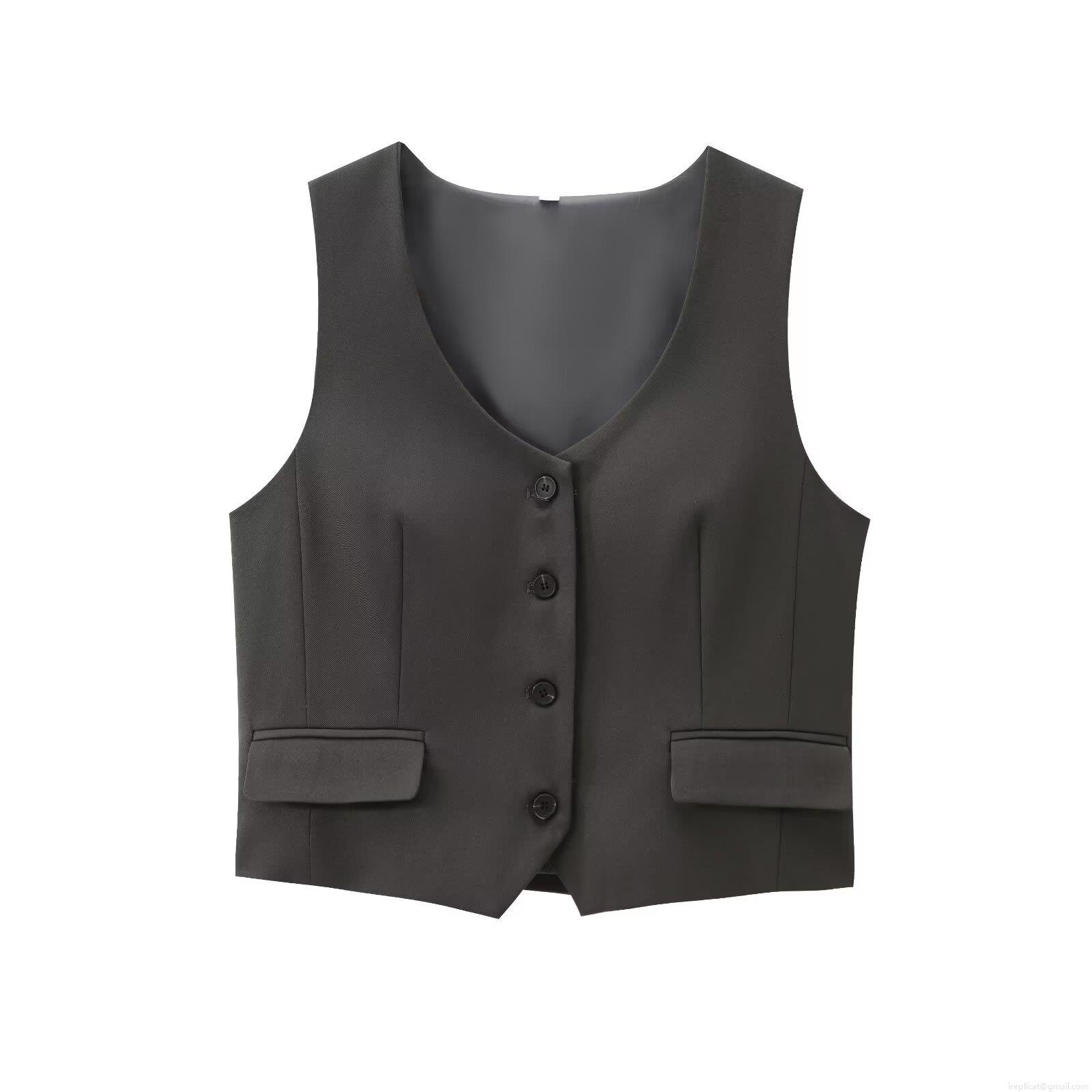 • Women's Business Casual 2 Piece Suit Set Solid Color V-Neck Vest Top And High Waist Wide Leg Pants Polyester Office Workwear Outfit