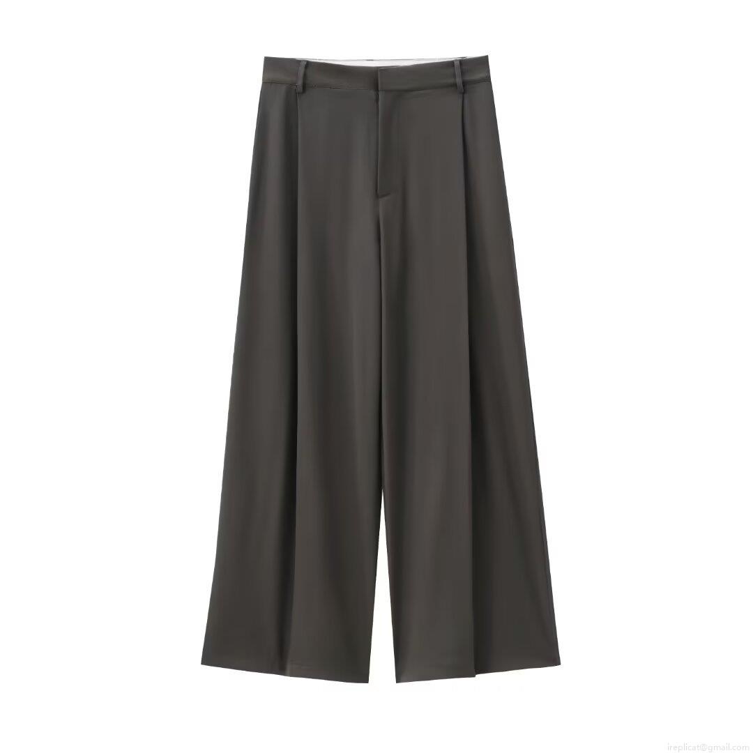 Solid Color, V-neck, Button Decoration, High-waisted Design, Wide-leg Style