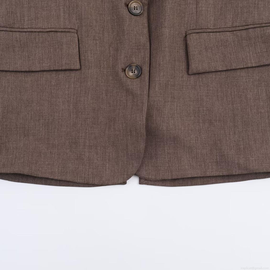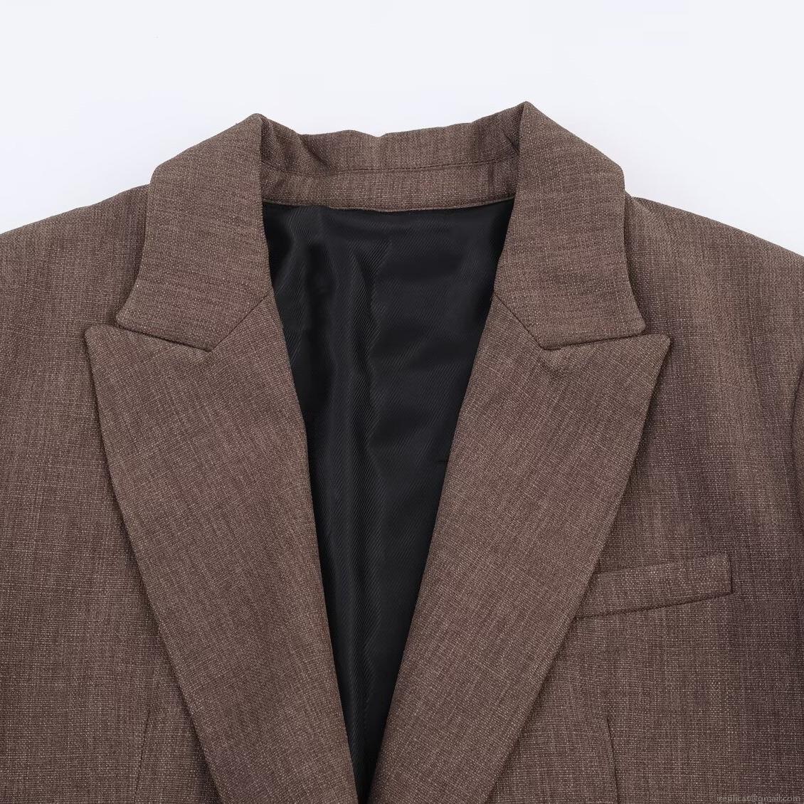 Women's Business Casual Blazer and Trousers Set Fashion Back Button Textured Suits Dark Brown Long Sleeve Office Lady Commute 2 Piece Outfit