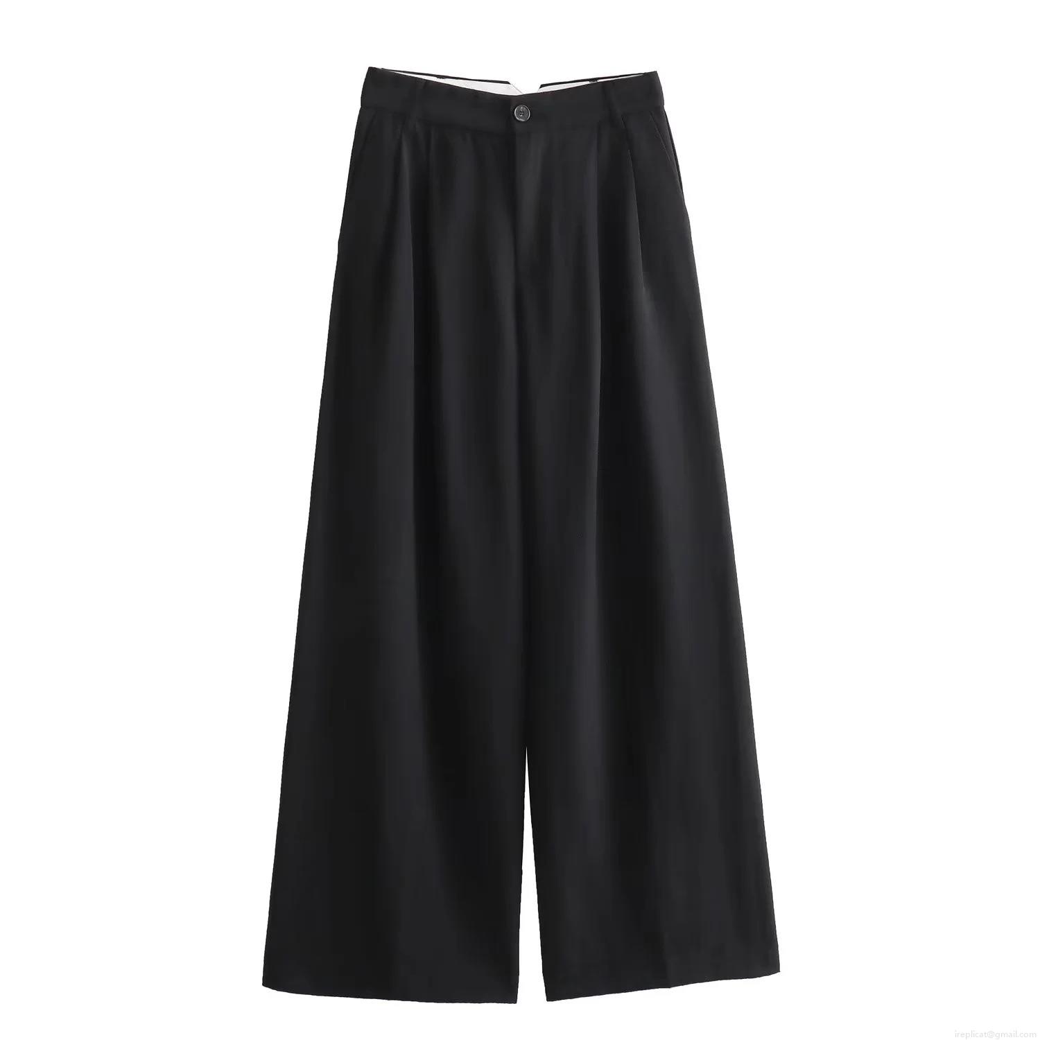 Solid Color, Pleats, Single-breasted, Wide-leg, High-waisted
