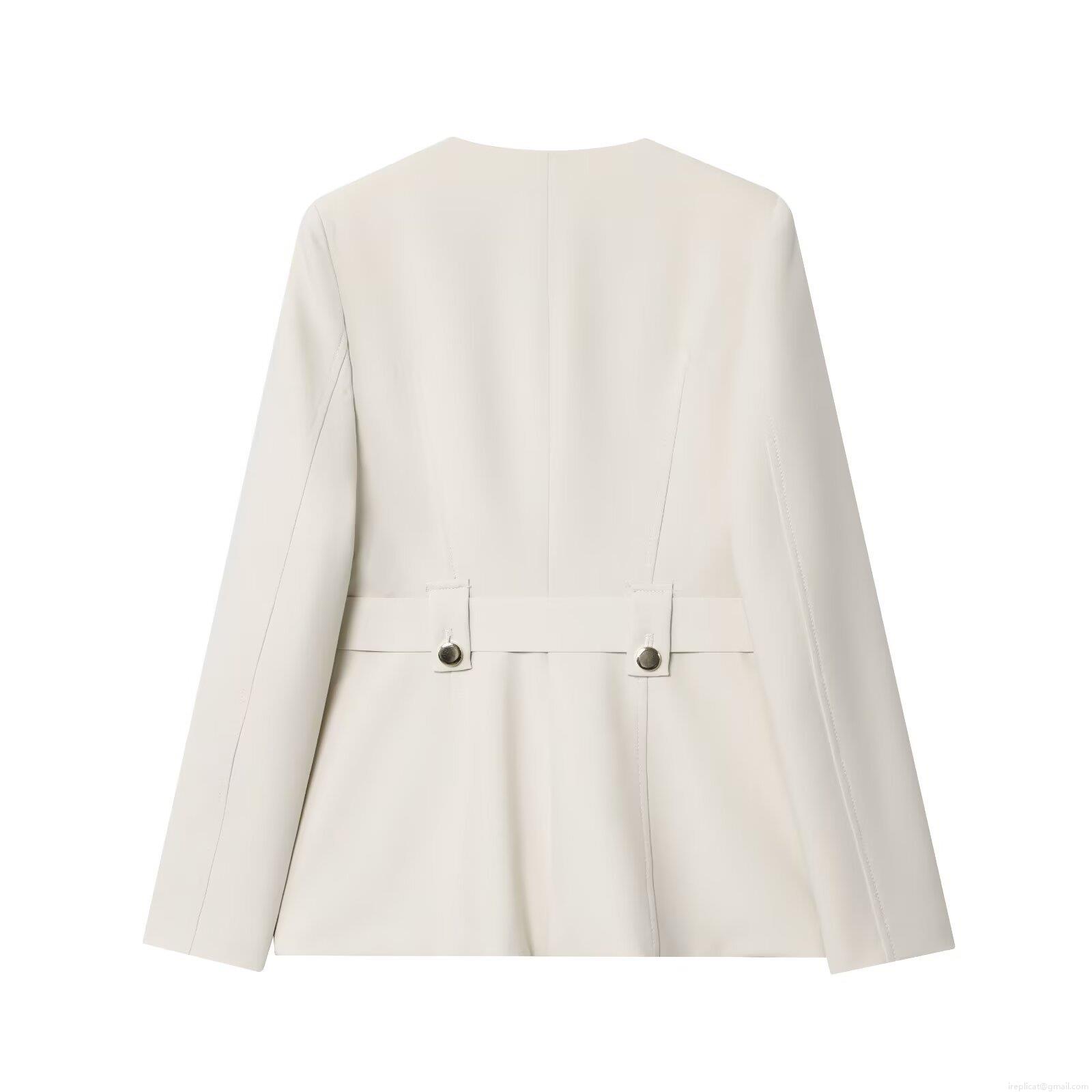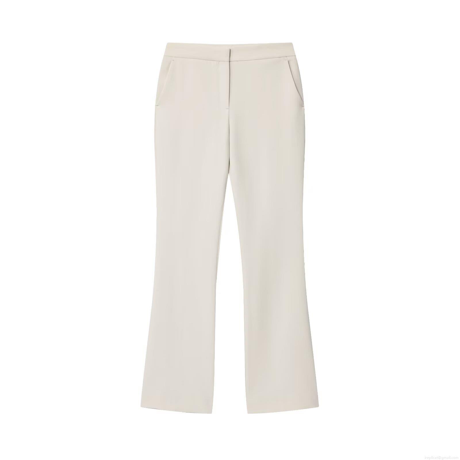 • Women's Business Casual Suit Set Round Neck Long Sleeve Blazer Jacket With Belt And High Waist Flared Pants Two Piece Professional Office Outfit Cream