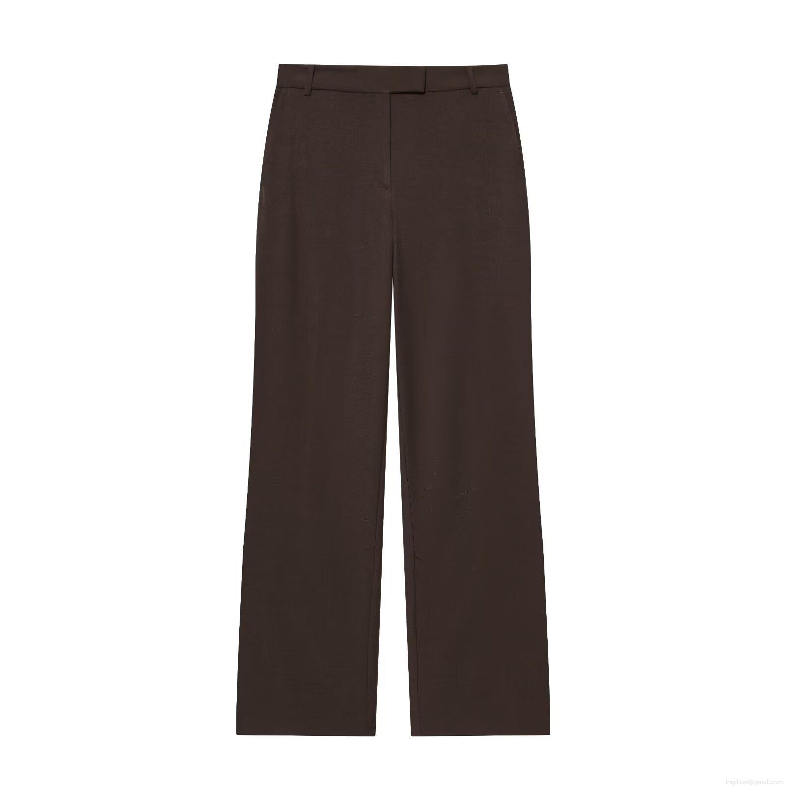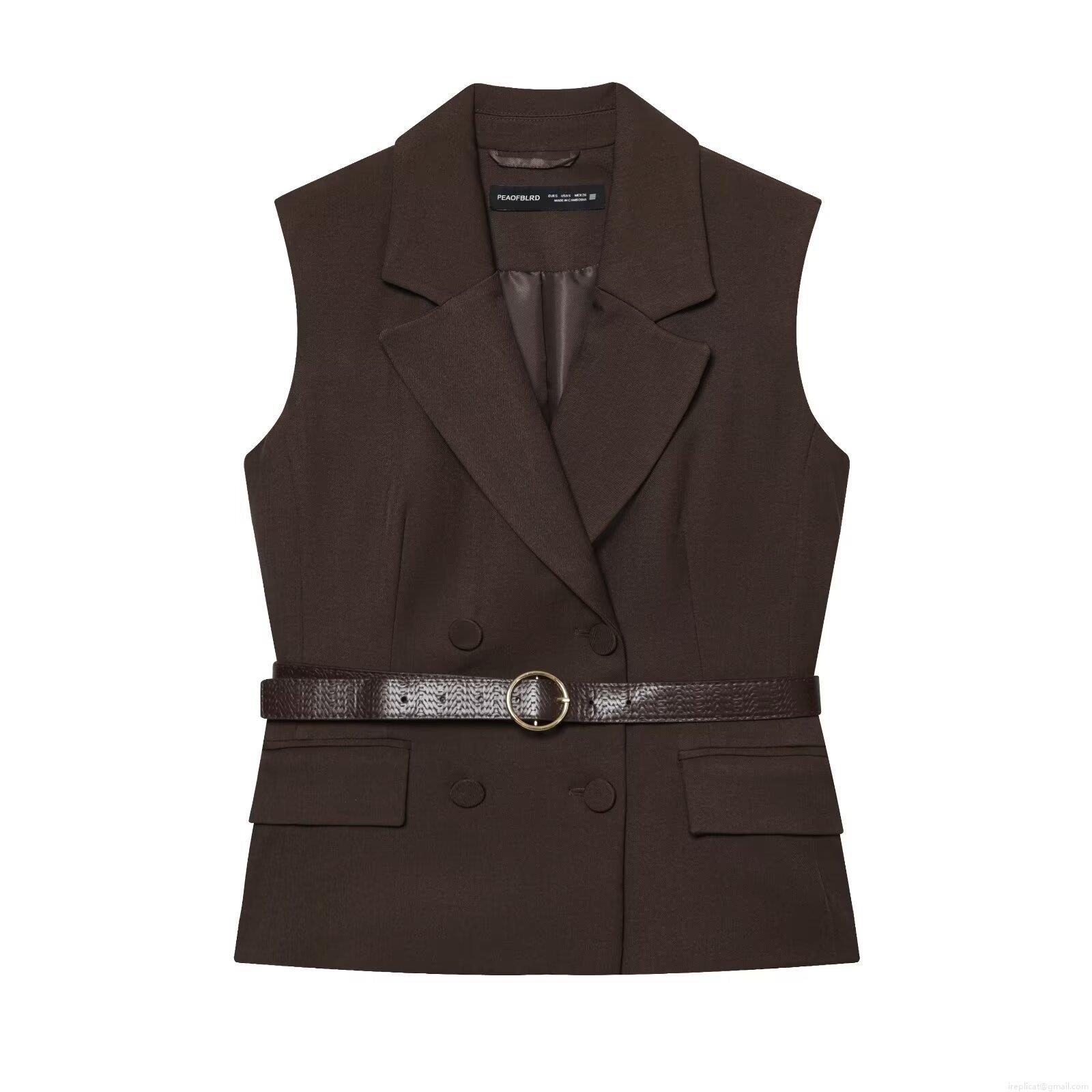 • Women's Business Casual Two-Piece Set Double Breasted Sleeveless Vest With Croco Pattern Belt And High Waist Wide Leg Straight Pants Office Outfits Early Autumn Fashion Dark Brown