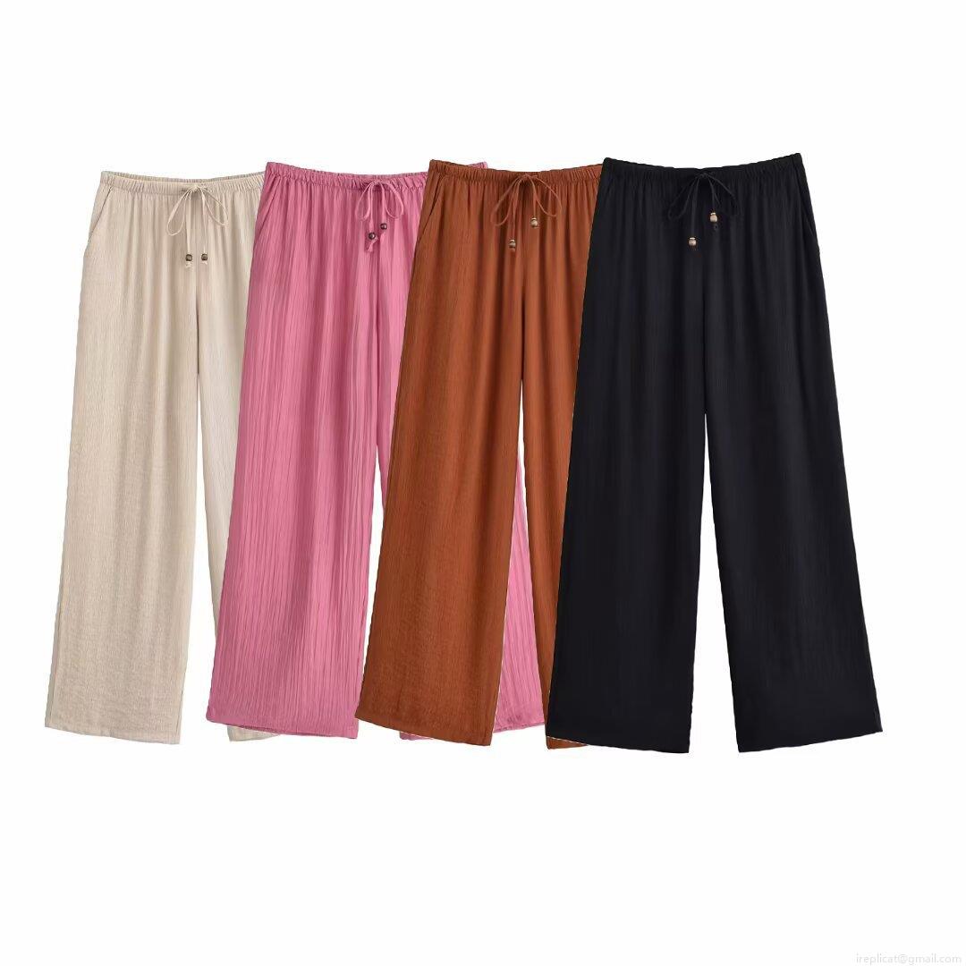 Solid Color, Pleats, Drawstring, Single-breasted, Wrinkled Texture