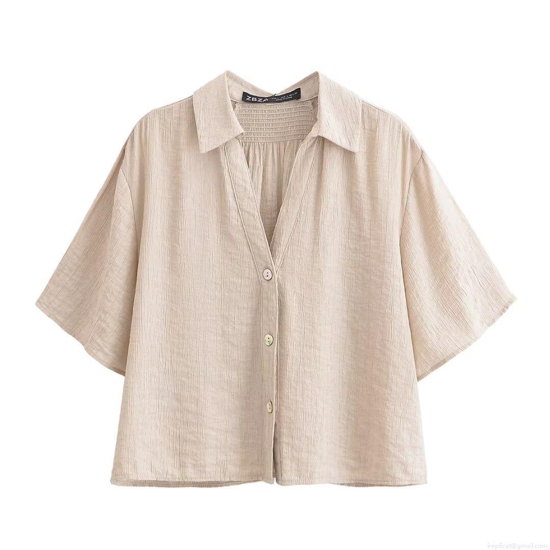 • Women's Casual 2 Piece Outfits Crinkled Texture Short Sleeve Button Shirt and Wide Leg Pants Set Solid Color Summer Vacation Streetwear Lounge Set
