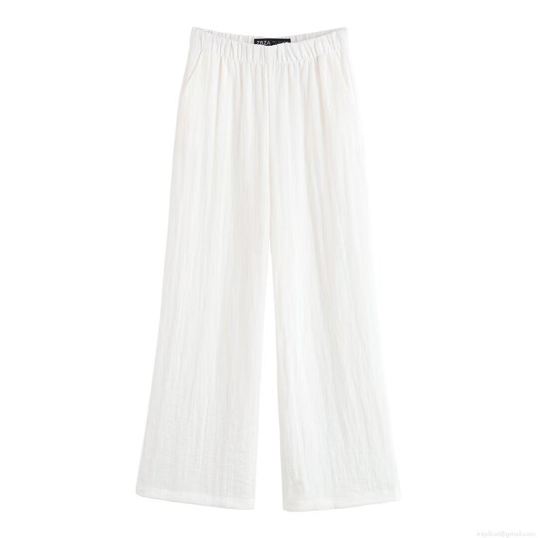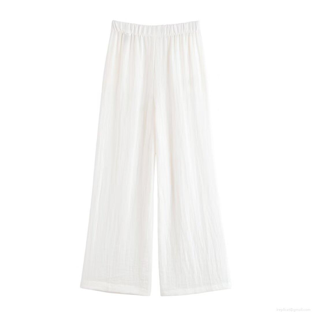 • Women's Casual 2 Piece Outfits Short Sleeve Lapel Shirt and Wide Leg Pants Set Textured Polyester Lace Trim Summer Loungewear Set White