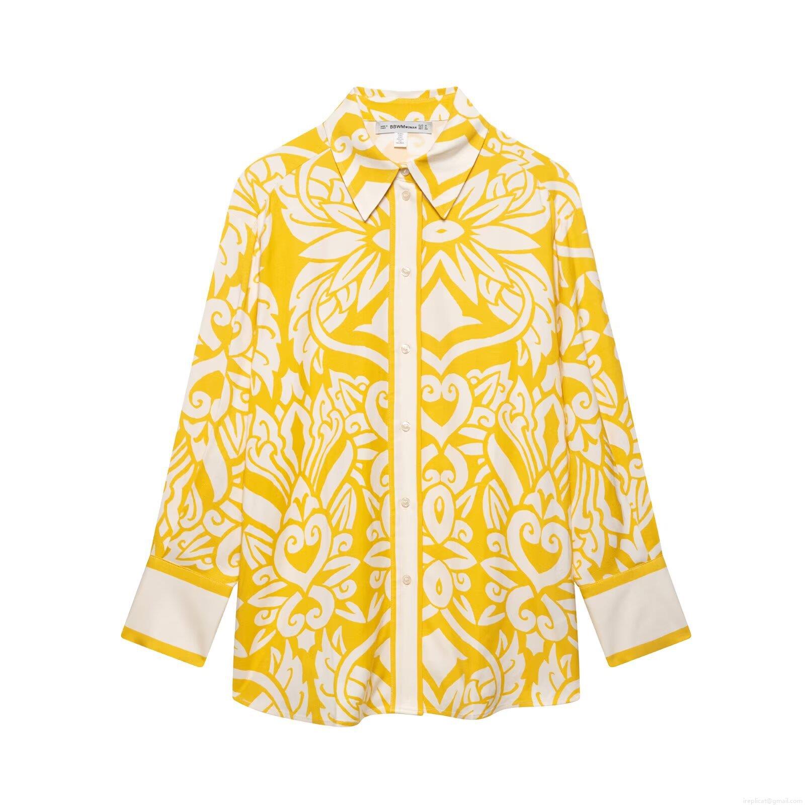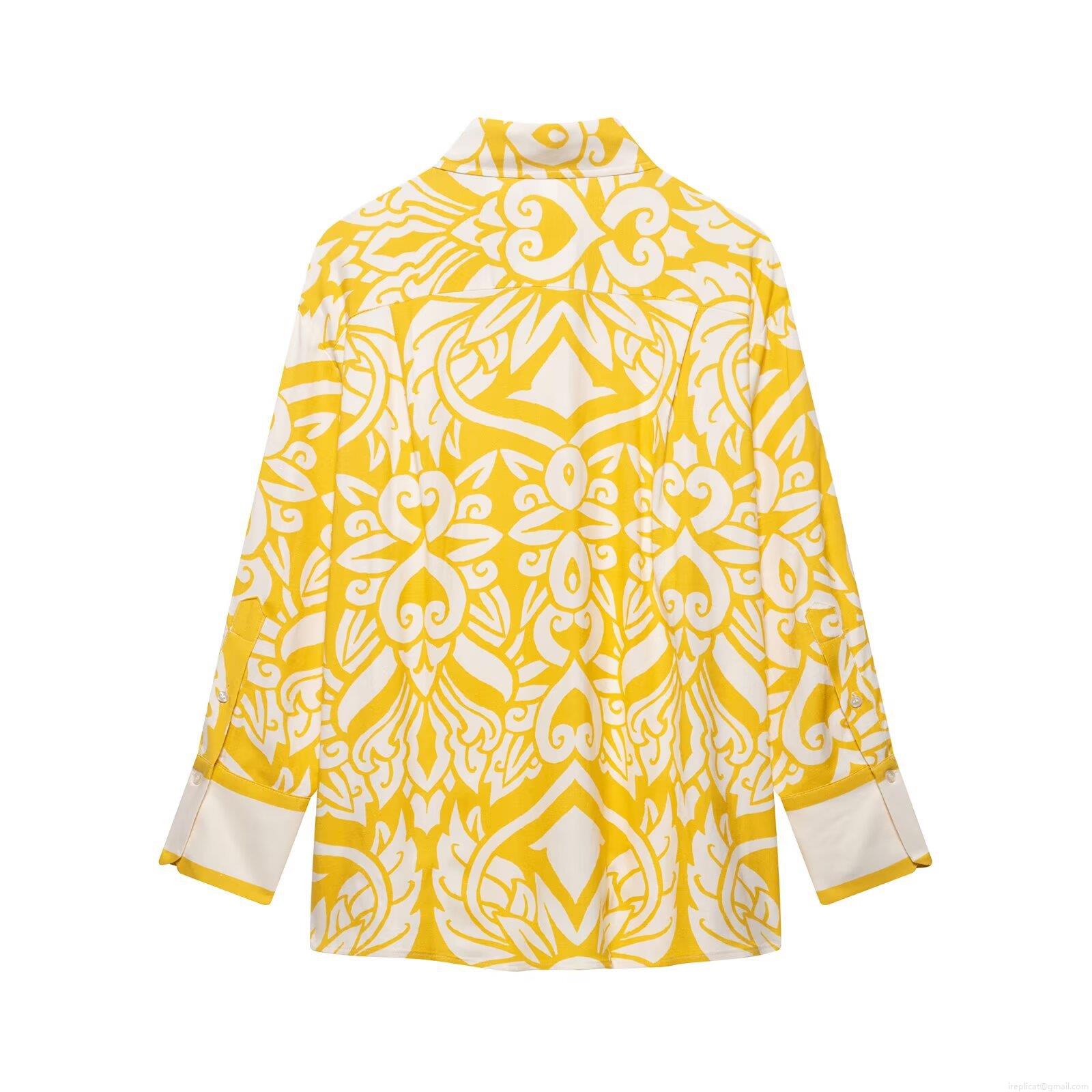 • Women's Casual 2 Piece Set Button Down Long Sleeve Shirt and High Waist Wide Leg Pants Baroque Floral Paisley Print Loose Outfits for Women Streetwear