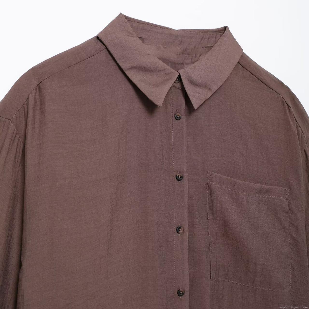 Solid Color, Pocket, Buttons, Gathering, Workwear Style
