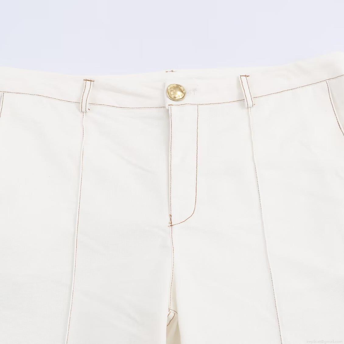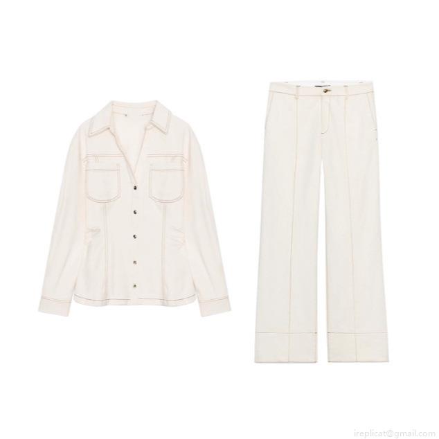 Women's Casual 2-Piece Set Contrast Stitching Long Sleeve Shirt and Flare Pants Workwear Style Off-White Polyester Cotton Blend Elegant Autumn Winter Outfit for Women