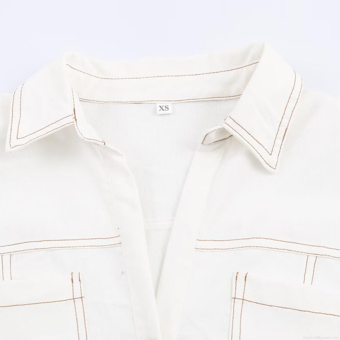 • Women's Casual 2-Piece Set Contrast Stitching Long Sleeve Shirt and Flare Pants Workwear Style Off-White Polyester Cotton Blend Elegant Autumn Winter Outfit for Women