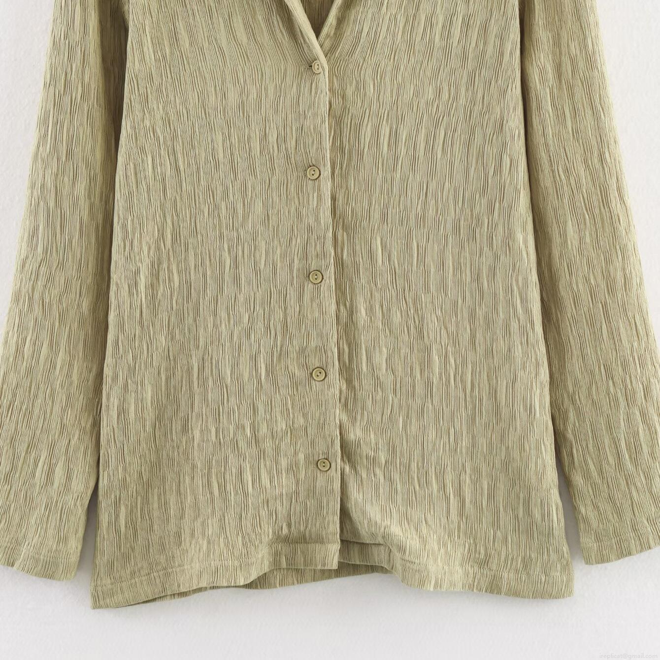 • Women's Casual 2-Piece Set Pleated Textured 100% Polyester Long Sleeve Button Down Shirt And Straight Wide Pants Lounge Wear Autumn Fashion