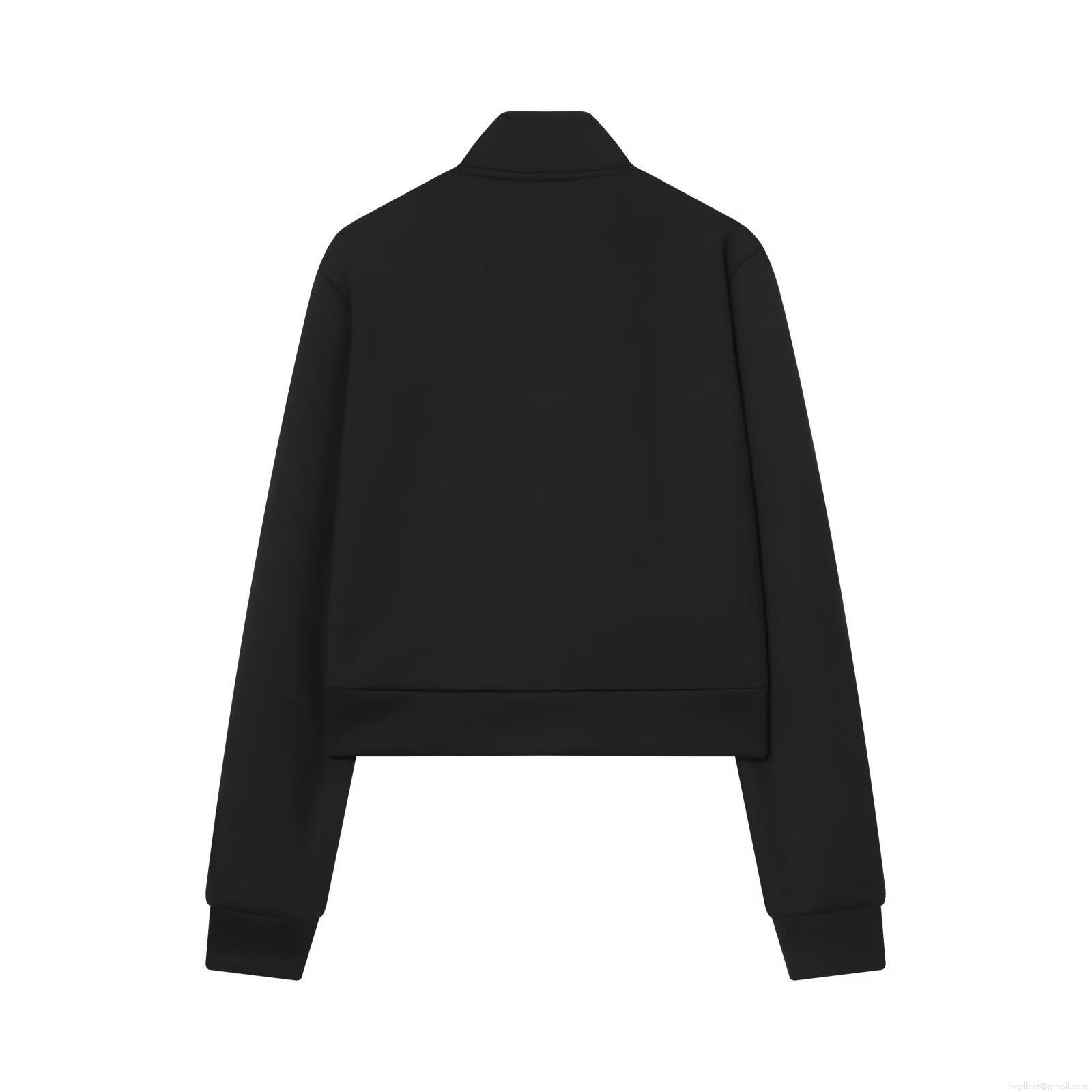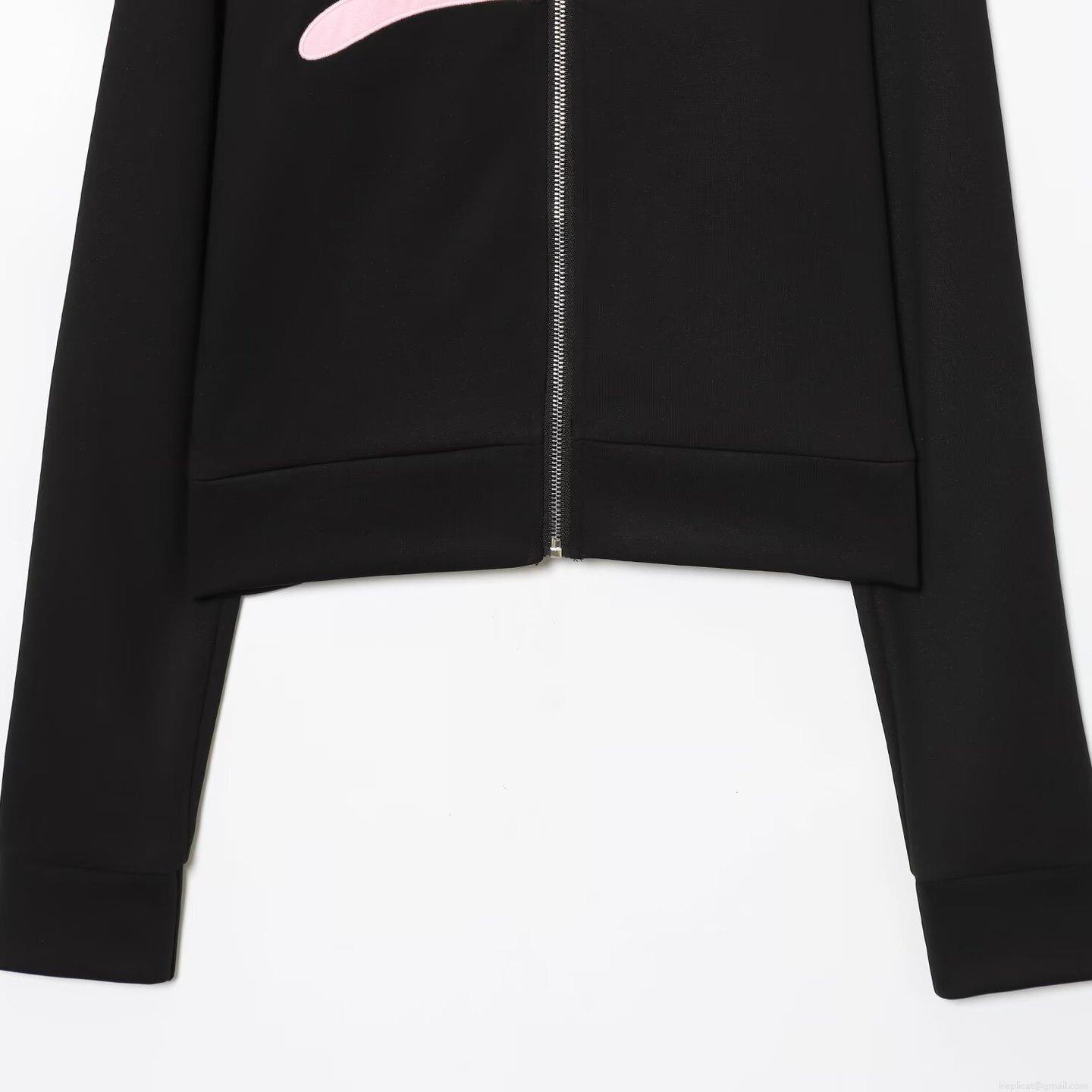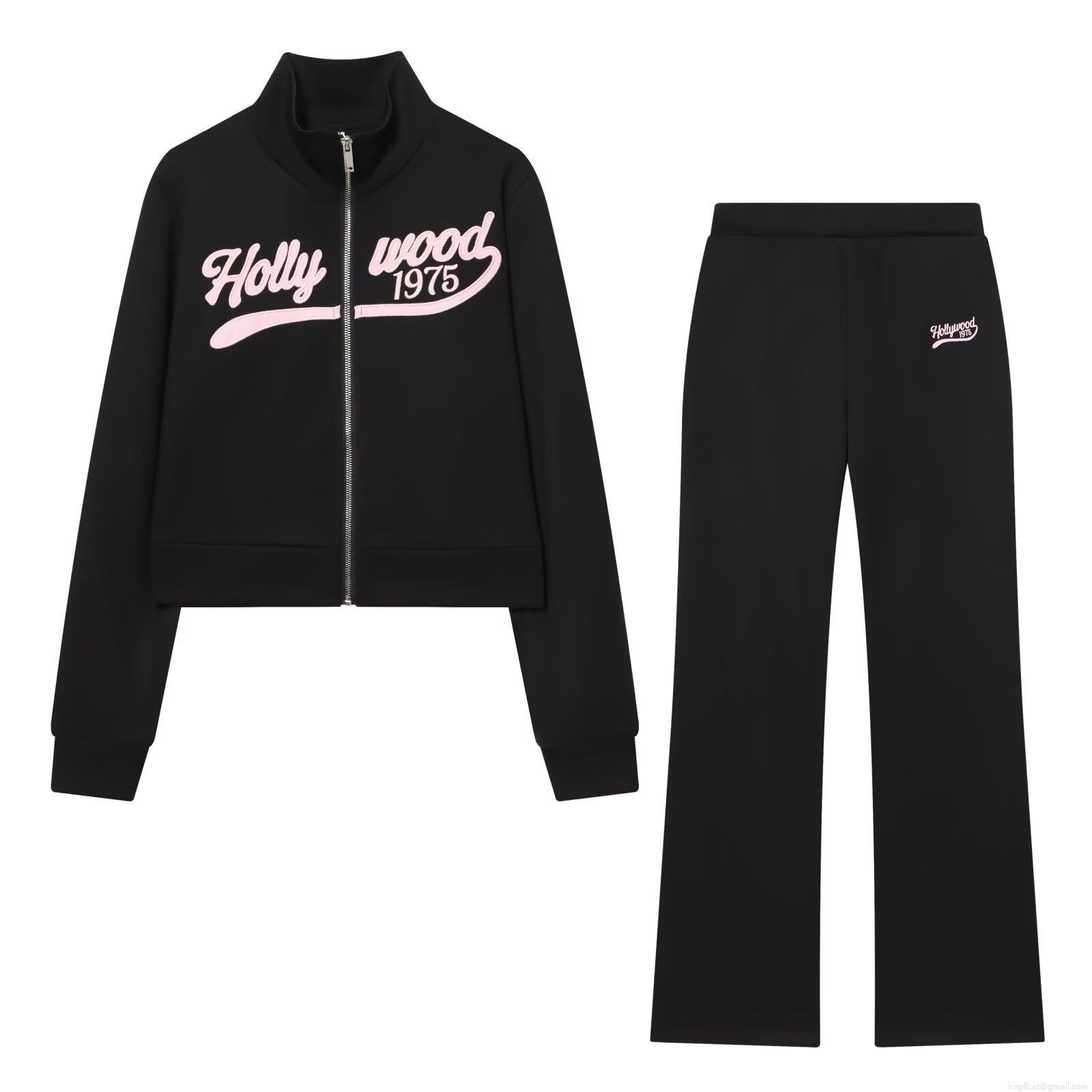 Women's Casual Black Tracksuit Set Long Sleeve Zipper Stand Collar Sweatshirt And Flare Pants Pink Hollywood 1975 Embroidery Retro Autumn Winter Athletic Two Piece Outfit