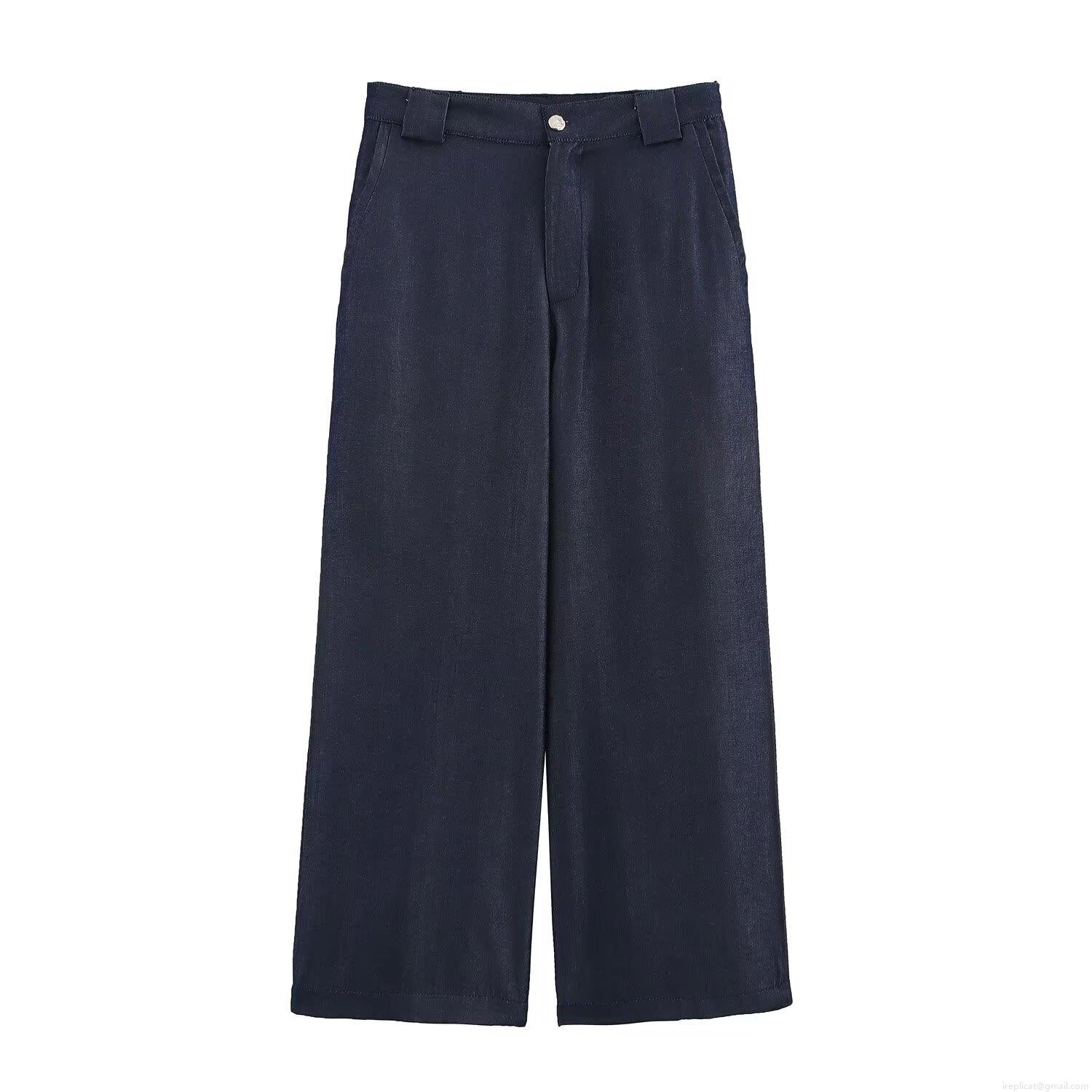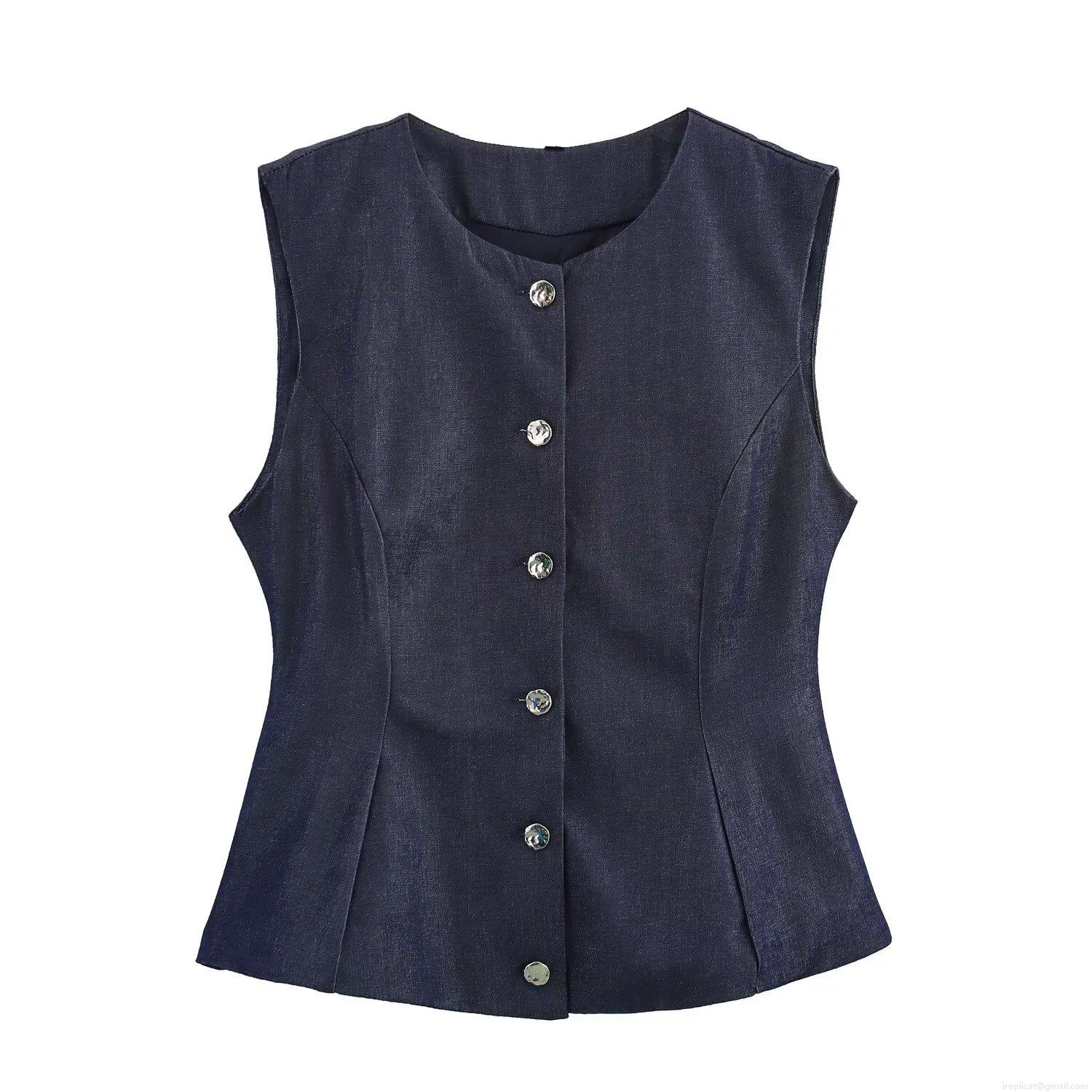 Women's Casual Cotton Blend Denim Blue Two Piece Set Sleeveless Button Waistcoat Vest And High Waist Wide Leg Pants Streetwear Office Commute Suit