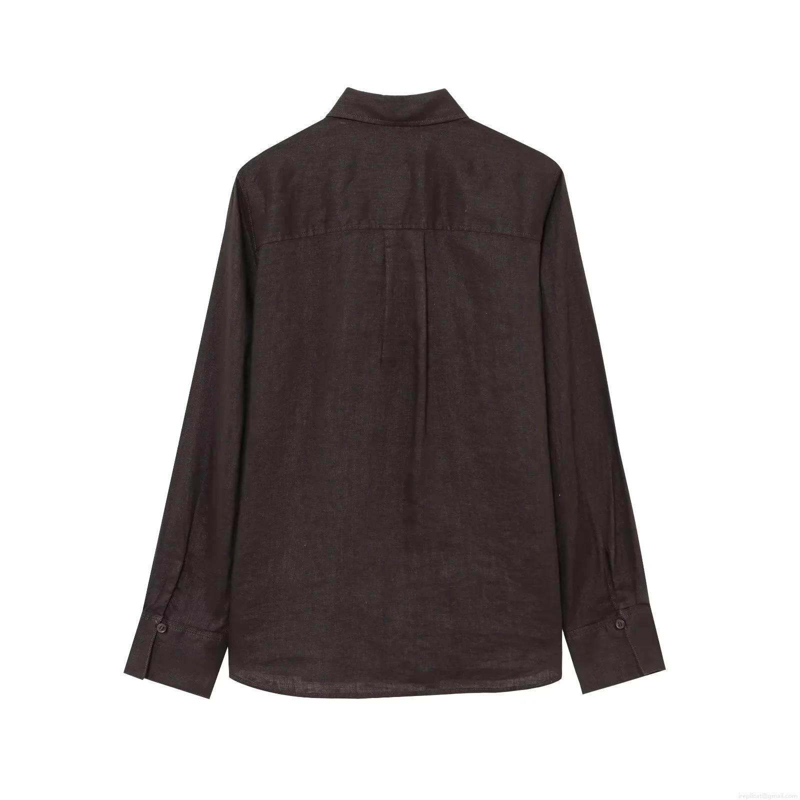 • Women's Casual Cotton Linen Two Piece Outfits Long Sleeve Button Down Shirt And High Waist Drawstring Wide Leg Pants Set Lounge Wear Solid Color