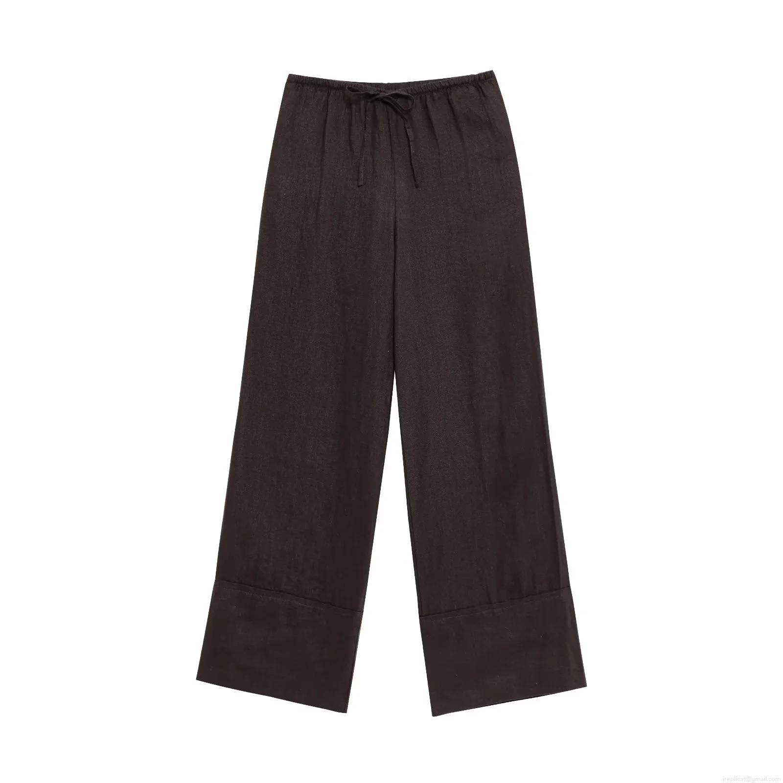 Solid Color, Drawstring, Lace, Elastic Waistband, Wide-leg