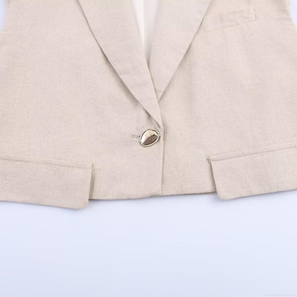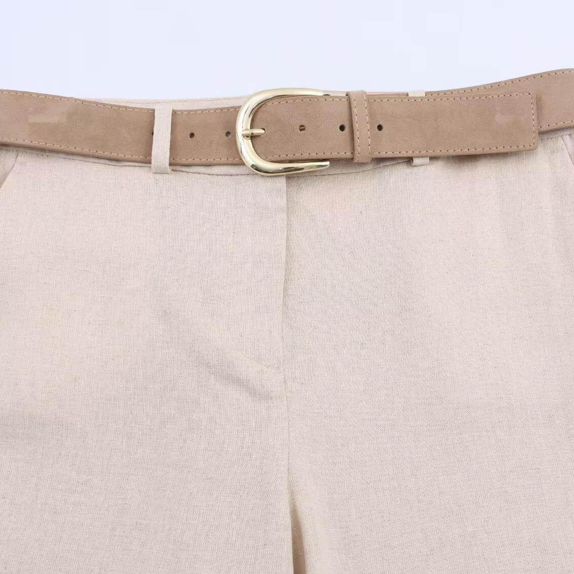 • Women's Casual Cotton Linen Vest And Pants Two Piece Suit With Belt Solid Color Sleeveless Waistcoat Straight Leg Trousers Set For Commute Office Daily
