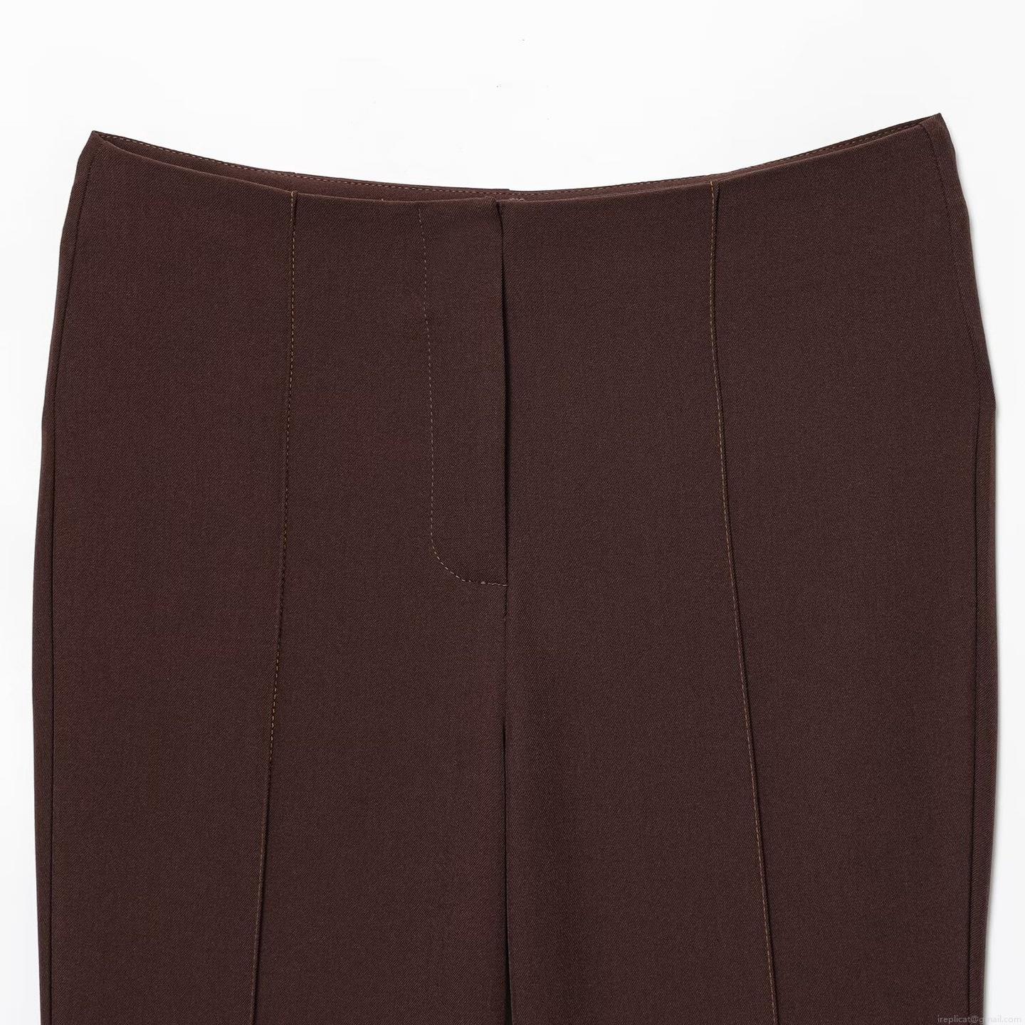 • Women's Casual Deep Brown Two-Piece Set Polyester Spandex Contrast Stitching Short Jacket And Flare Pants Suit For Autumn Daily Office Ladies Fashion Outfits