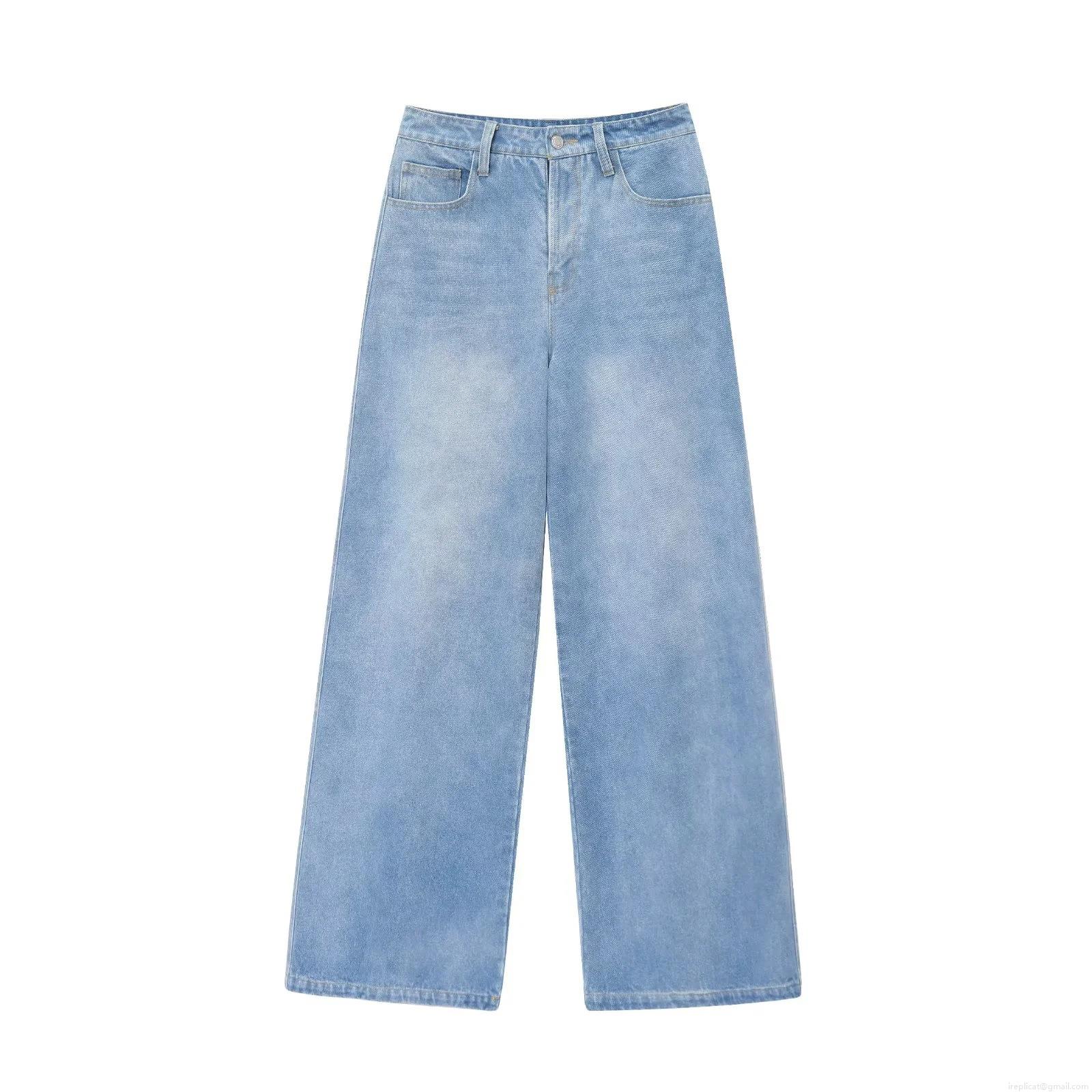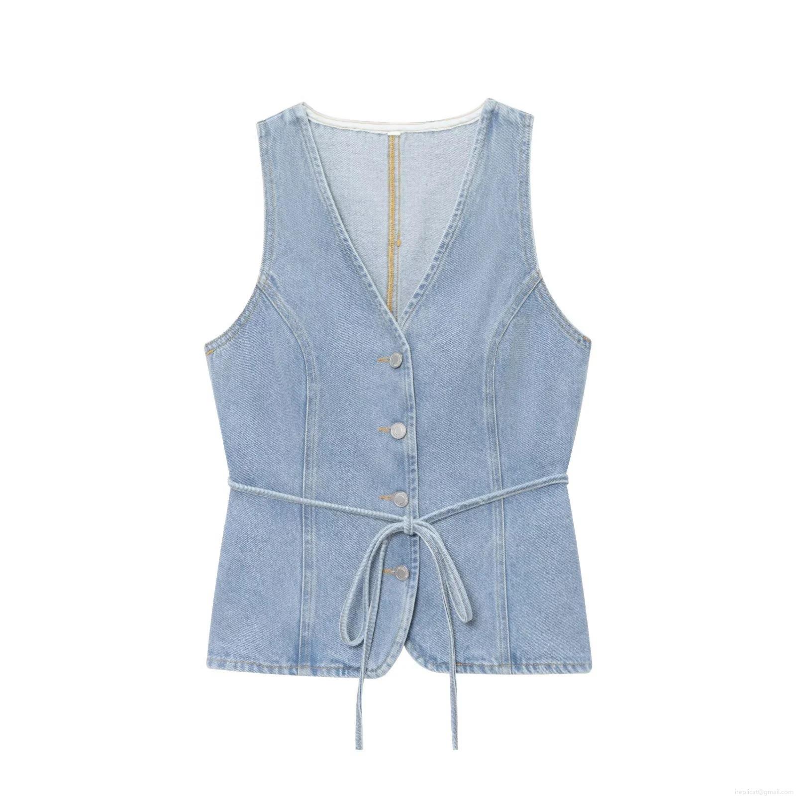 • Women's Casual Denim 2 Piece Set V-Neck Sleeveless Waistcoat And High Waist Wide Leg Jeans Pants Light Blue Streetwear Outfits