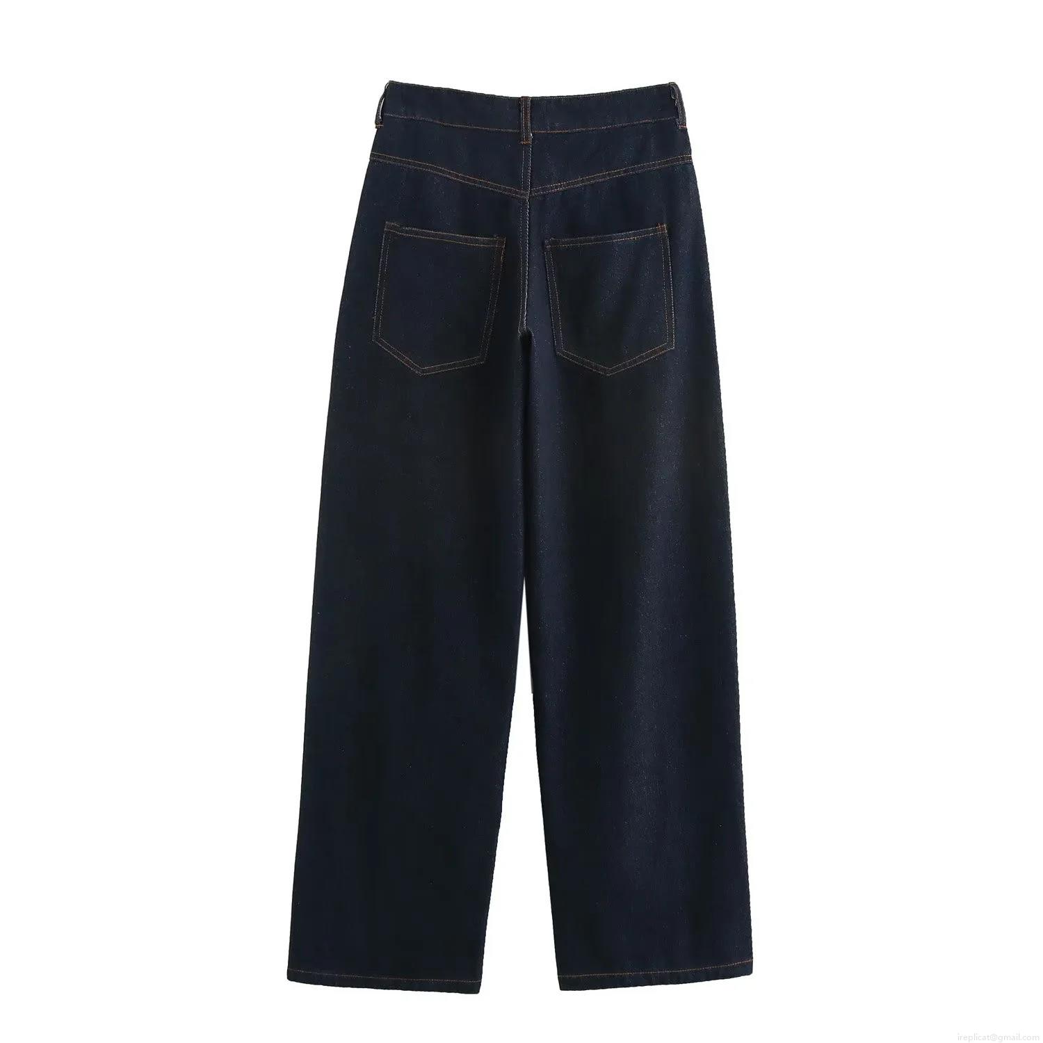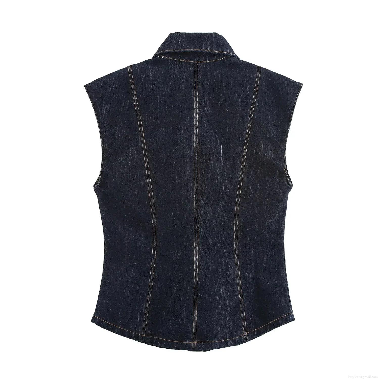 • Women's Casual Denim Two Piece Set Dark Blue Sleeveless Button Down Vest Top and High Waist Wide Leg Long Pants Streetwear Outfits for Summer Vacation Resort Wear