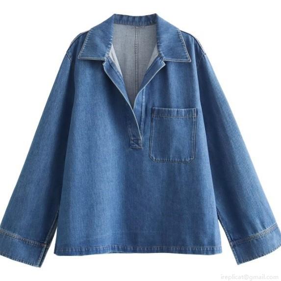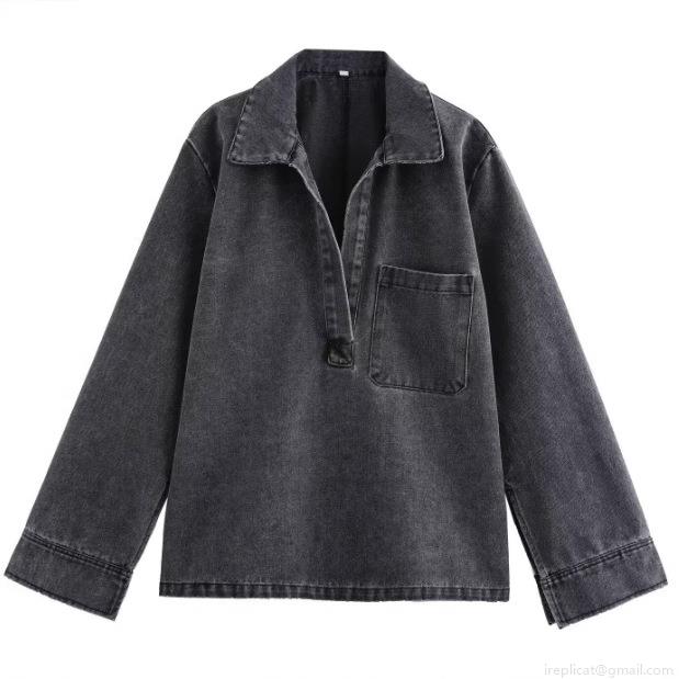 • Women's Casual Denim Two Piece Set Washed Long Sleeve V-Neck Shirt And High Waisted Wide Leg Pants Loose Vacation Outfits For Ladies