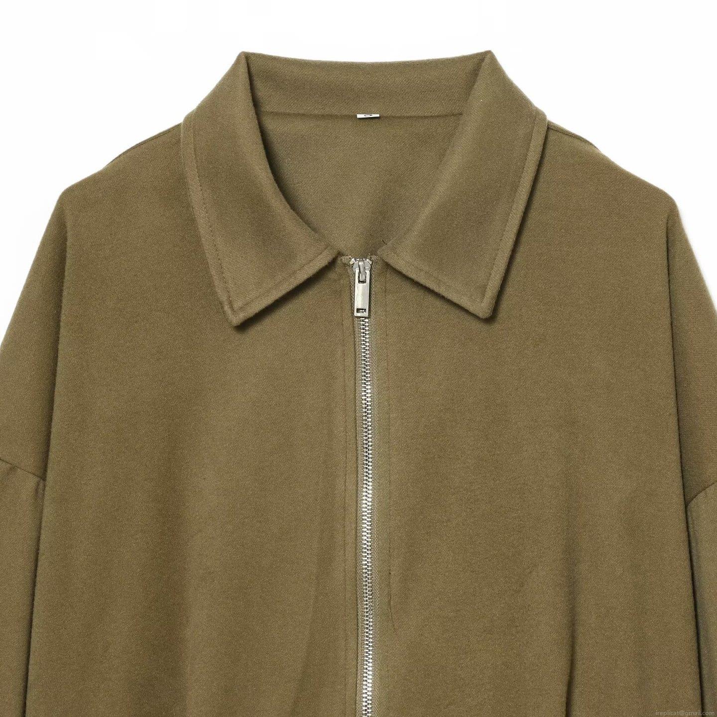 Solid Color, Elastic Waistband, Zipper Decoration, Dropped Shoulder Sleeves, Lapel Design