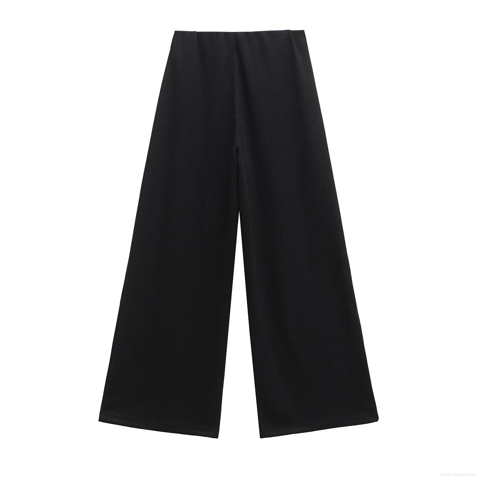 • Women's Casual Knit Two Piece Set Sleeveless Single Breasted Vest Top And High Waist Wide Leg Pants Ribbed Solid Loungewear Streetwear Outfits
