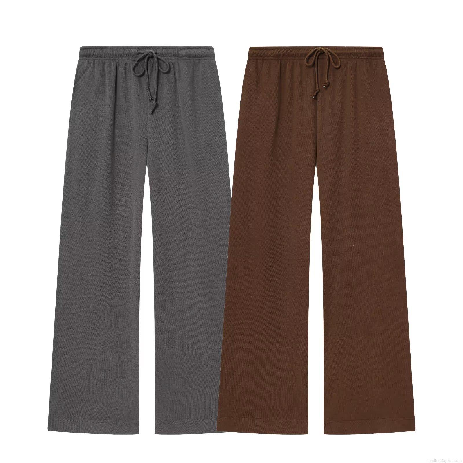 • Women's Casual Knitted Two Piece Set Solid Color Half Zip Up Long Sleeve Sweatshirt And Wide Leg Drawstring Pants Lounge Tracksuit For Women Streetwear