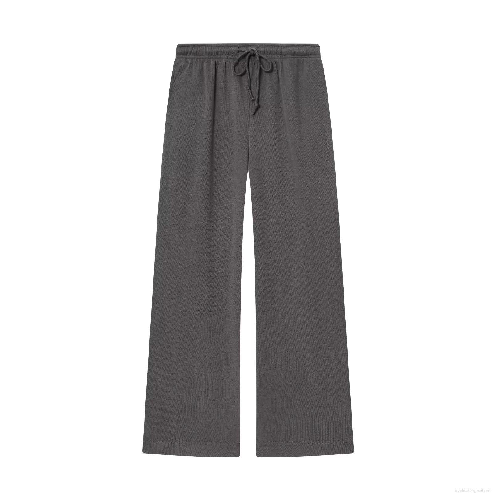 Solid Color, Zipper, Drawstring, Ribbed, Wide-leg