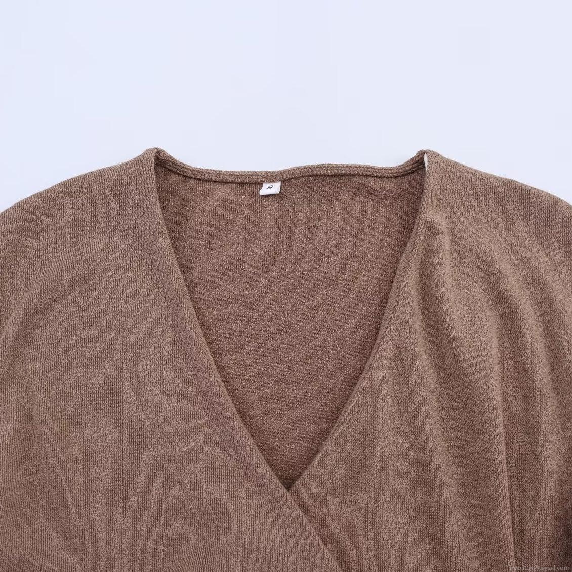 Solid Color, V-neck, Metal Decoration, Pin Decoration, Rough Texture, Asymmetrical Cut