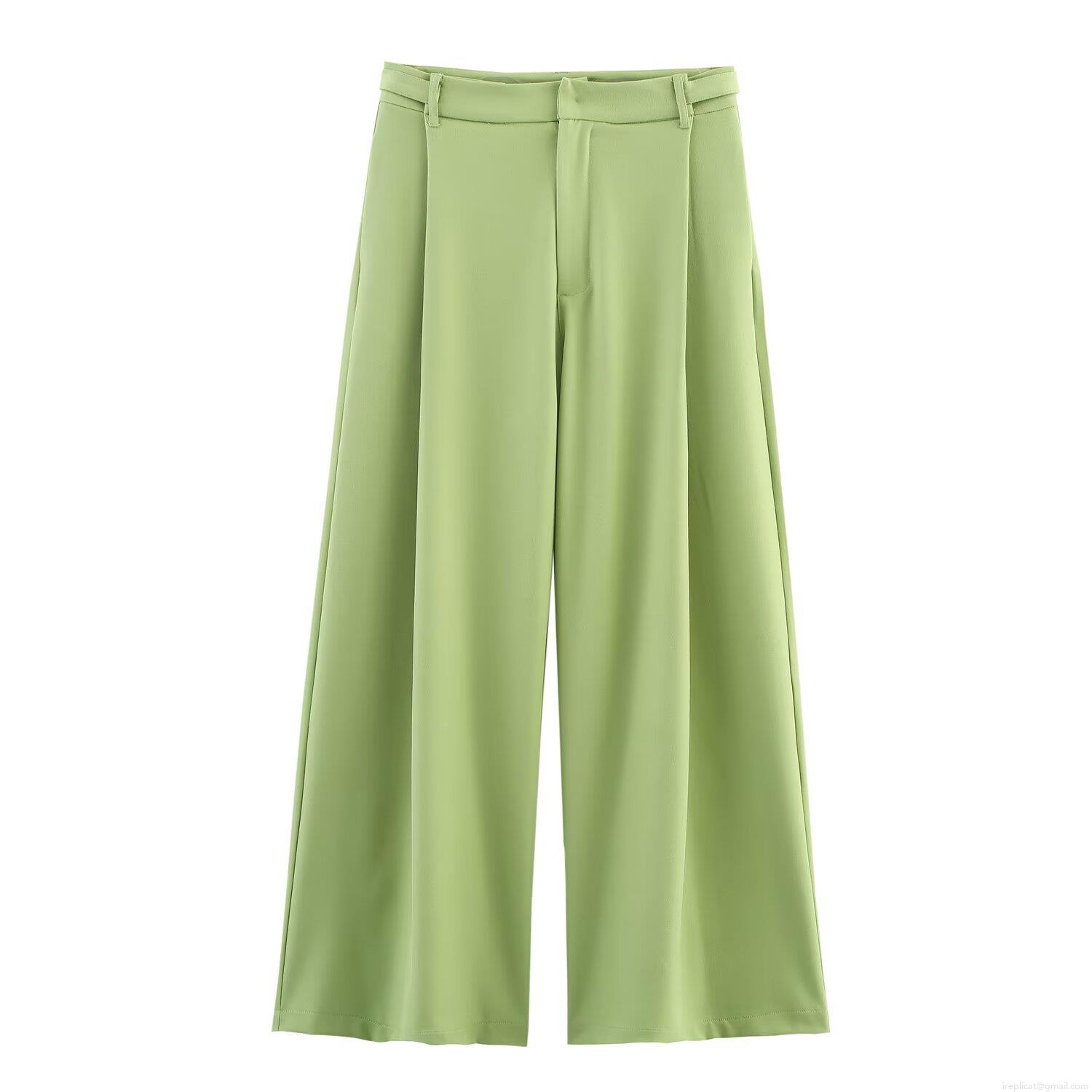 • Women's Casual Light Green Blazer and Wide Leg Trousers Set Office Lady Solid Color Polyester Lapel Suit Streetwear Two Piece Outfits
