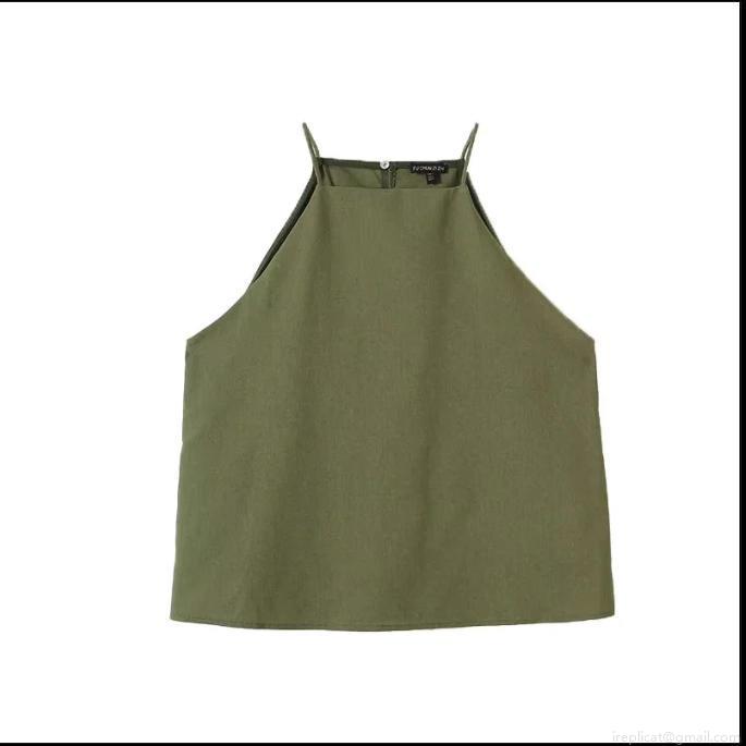 • Women's Casual Linen Blend Two Piece Set Halter Neck Sleeveless Top And Wide Leg Pants Solid Color Summer Vacation Beach Outfits