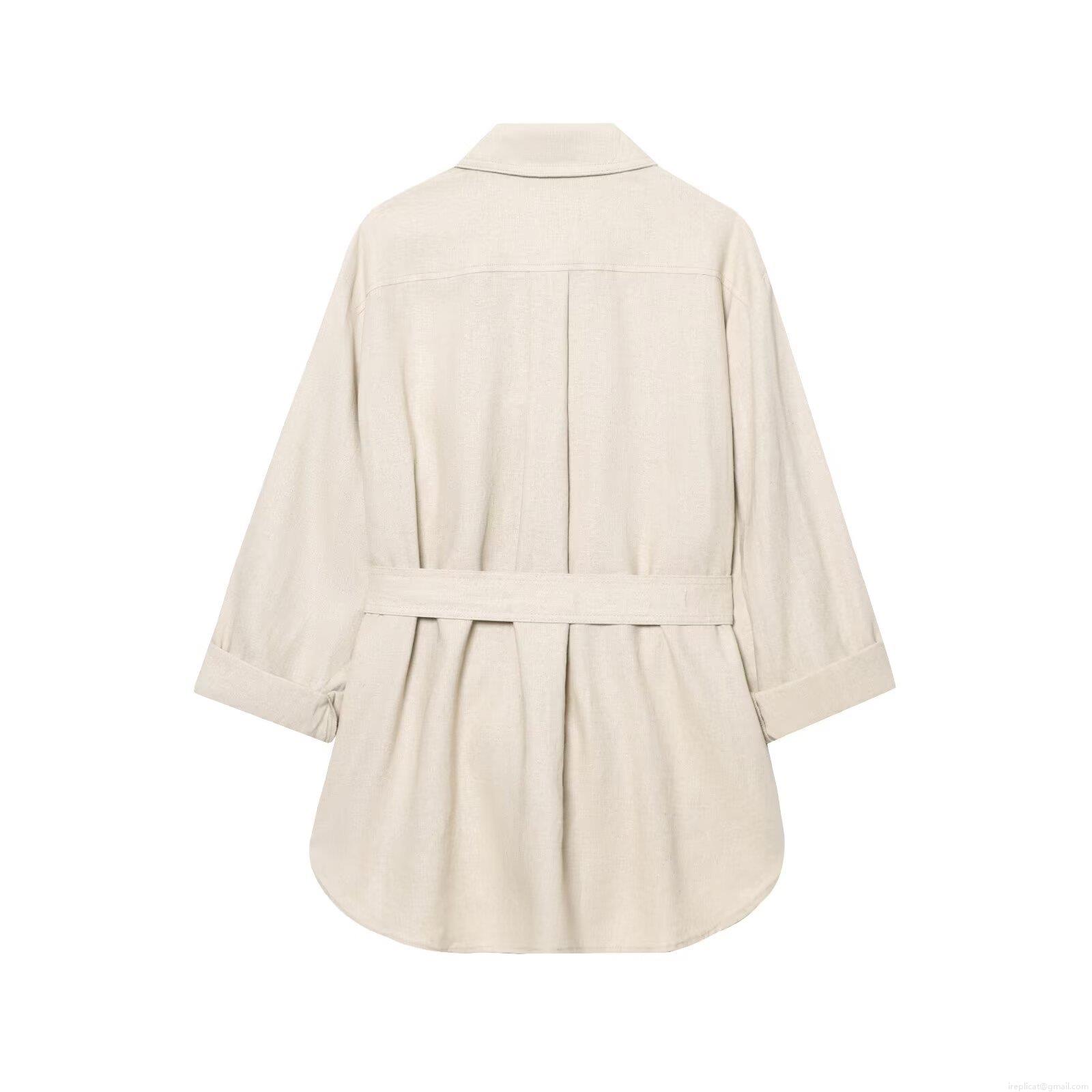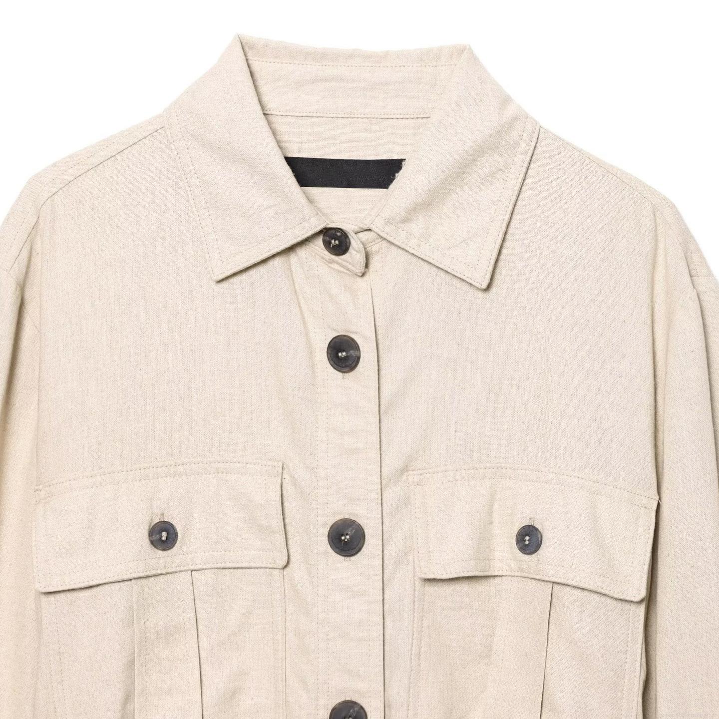 • Women's Casual Linen Cotton Shirt and Pants Set Minimalist Solid Color Long Sleeve Button Up Shirt With Belted Wide Leg Straight Trousers For Summer Daily Vacation Office Ladies Co-ord Outfits