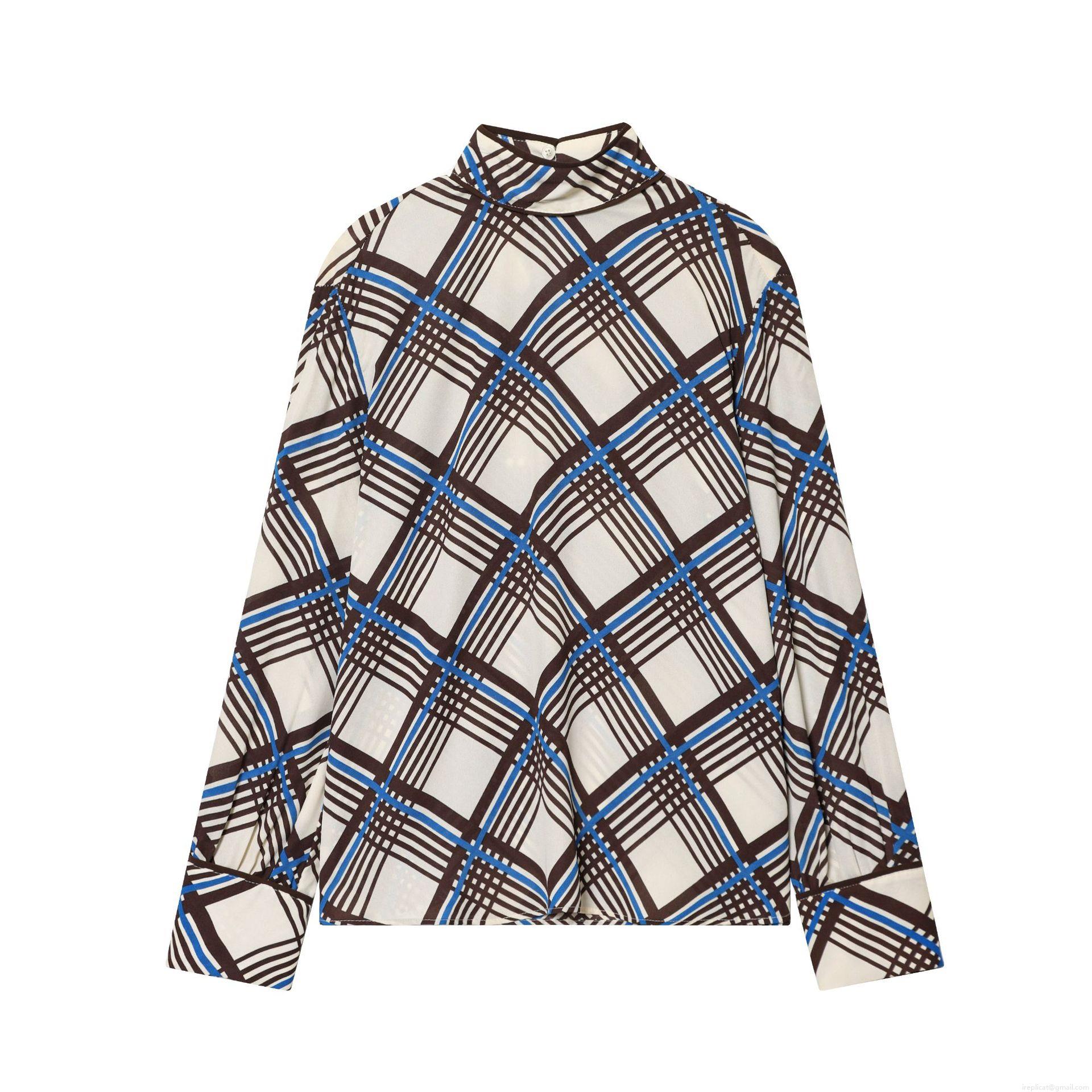 • Women's Casual Plaid Long Sleeve Pants Set Retro High Neck Crepe Shirt And Wide Leg Trousers Two Piece Outfits For Autumn Daily Wear