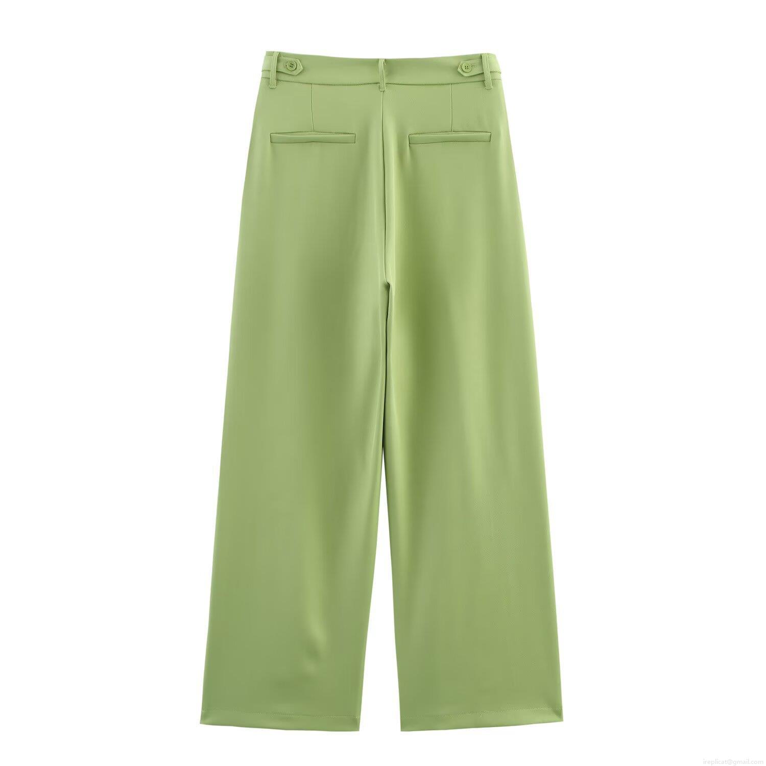 Solid Color, Wide-leg Pants, High-waisted, Drape, Notch Collar, Single-breasted Two-button