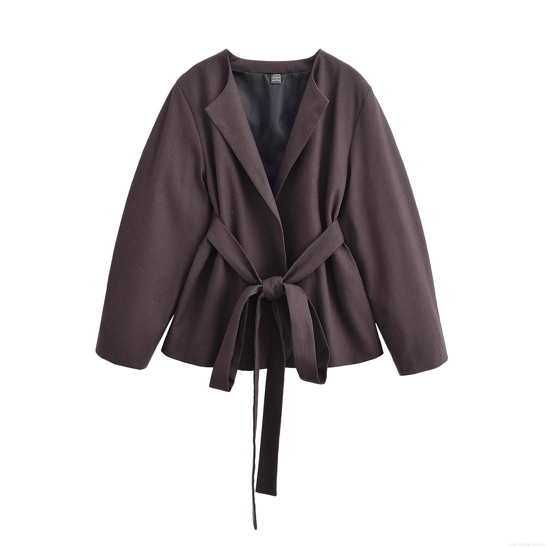 • Women's Casual Polyester Blazer Top And High Waisted Wide Leg Pants Two Piece Set Tie Waist Kimono Style Long Sleeve Streetwear Suit For Lady