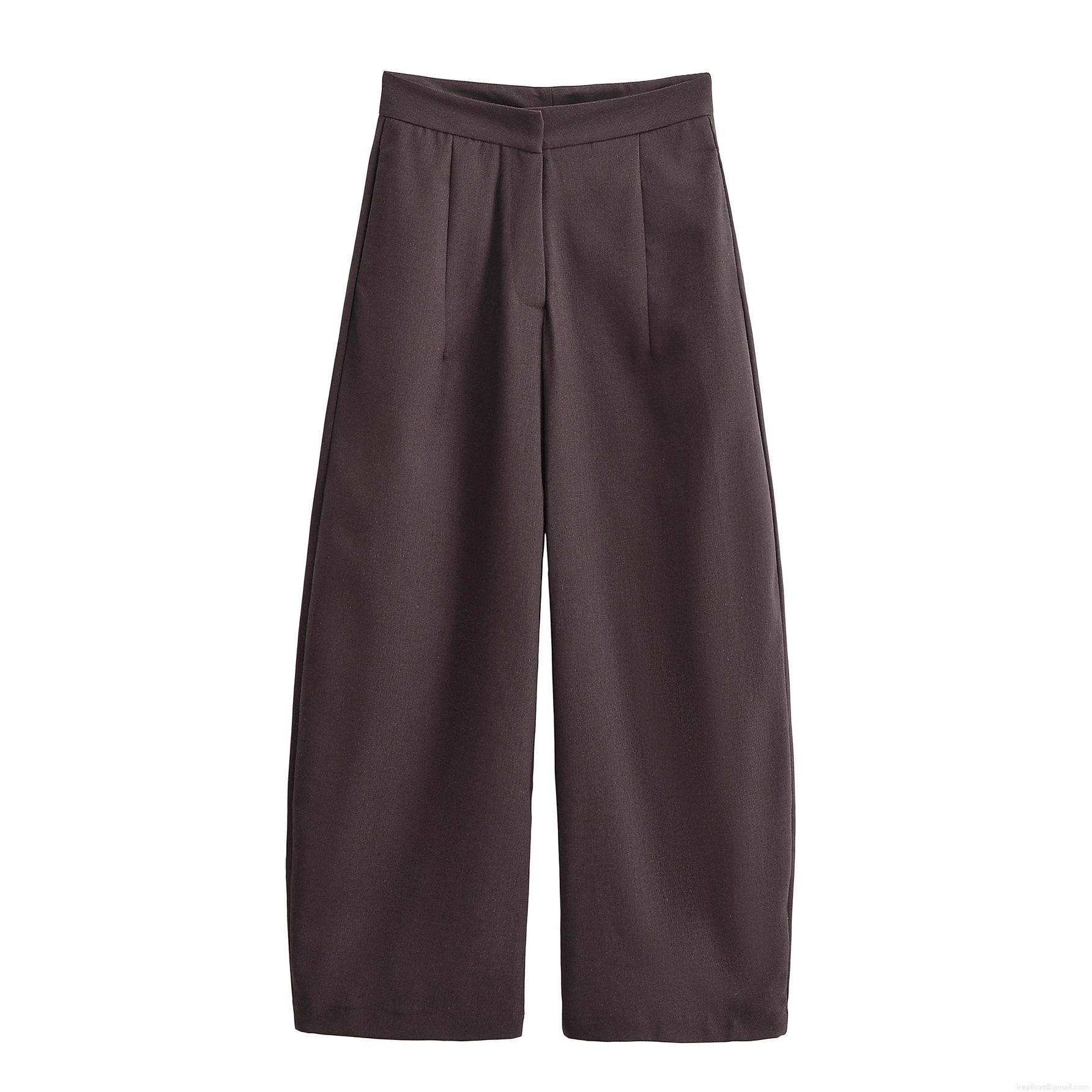 Solid Color, Puff Sleeves, Pleated Design, Suit Collar, Waist Tie, High-waisted Wide-leg Pants