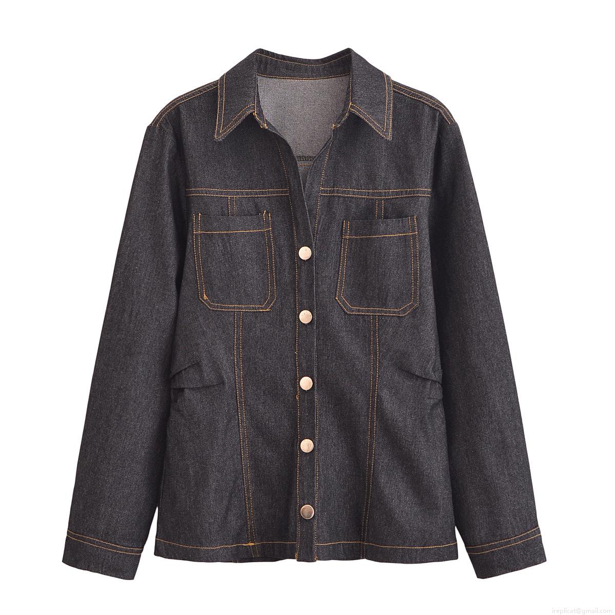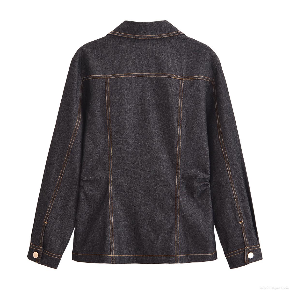 Solid Color, Bead, Metal Buckle, Contrasting Color Bright Lines, Double Chest Pockets